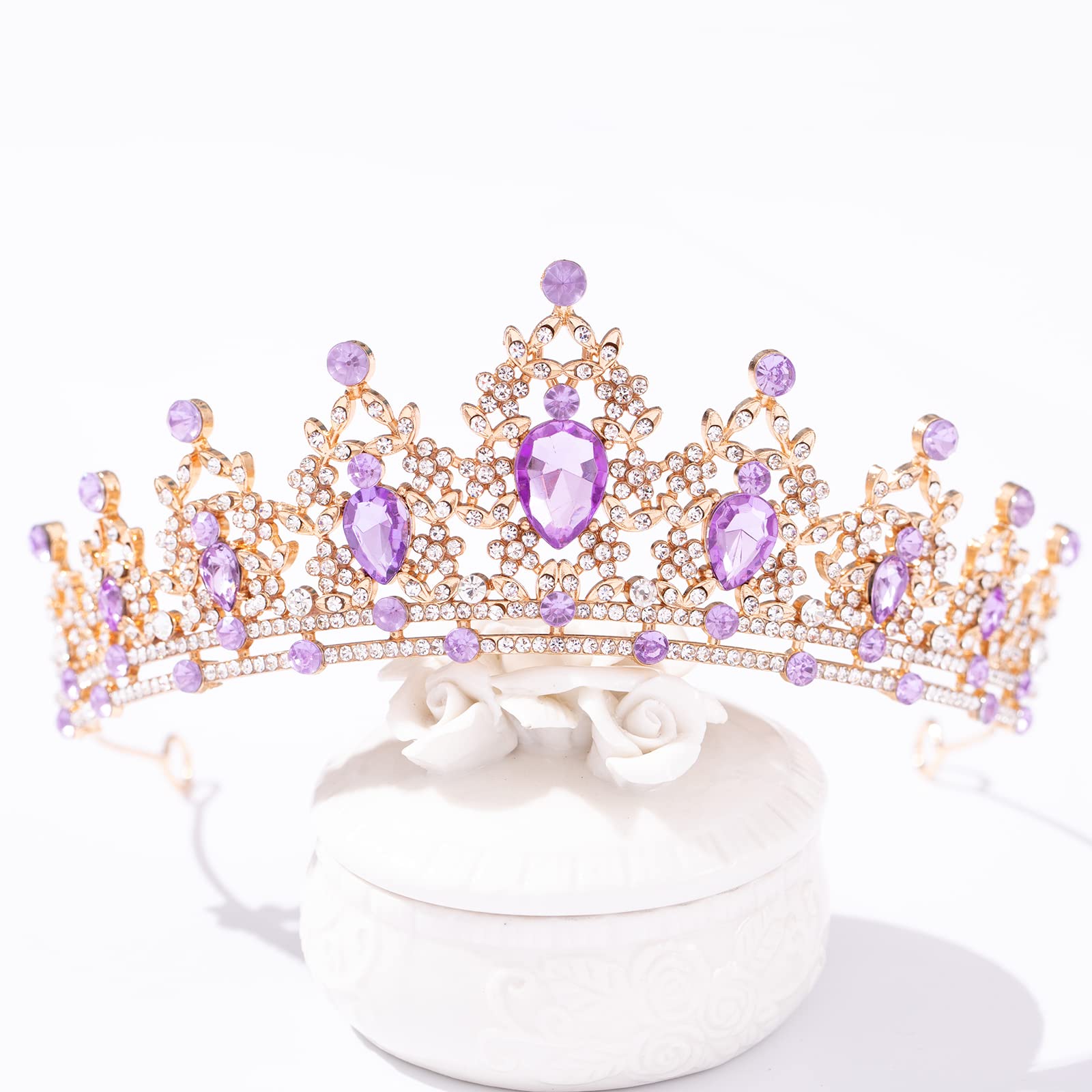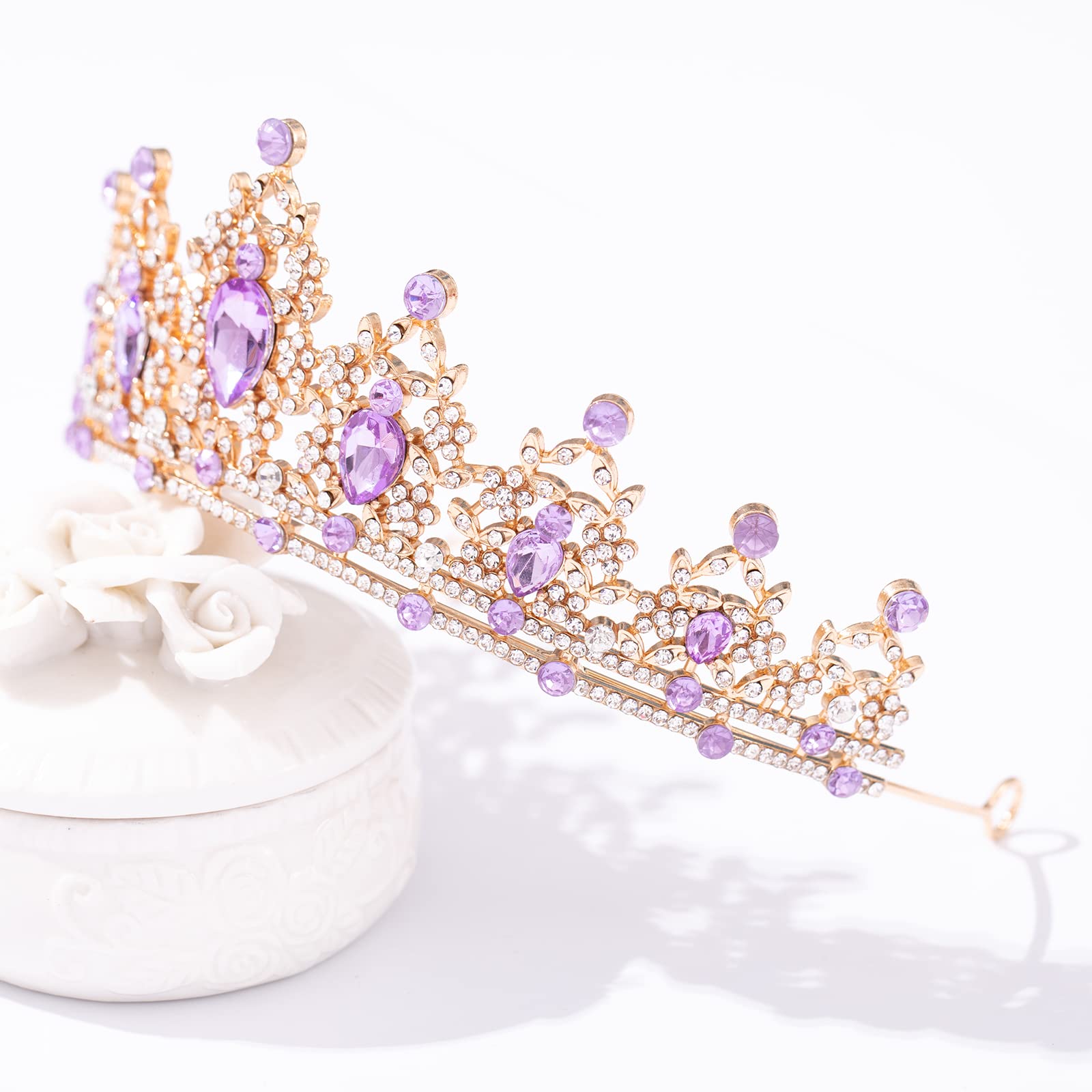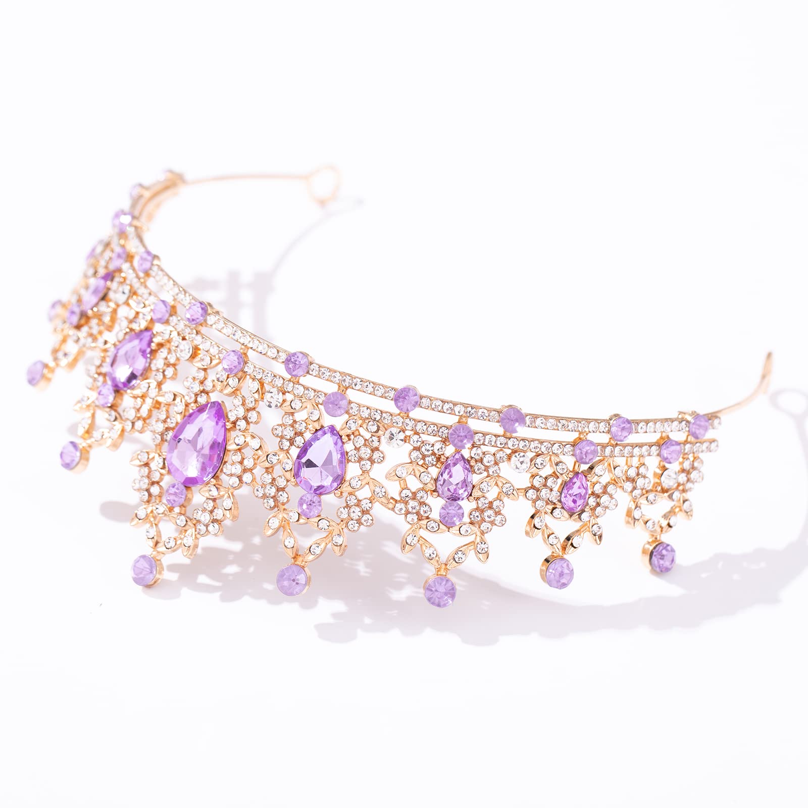 Sturdy Crown: This gold tiara is handmade by durable alloy and rhinestone. Light Purple Crystal Crown is beautiful,well-made and very solid and comfortable to wear, with hard texture for practicality and aesthetics.