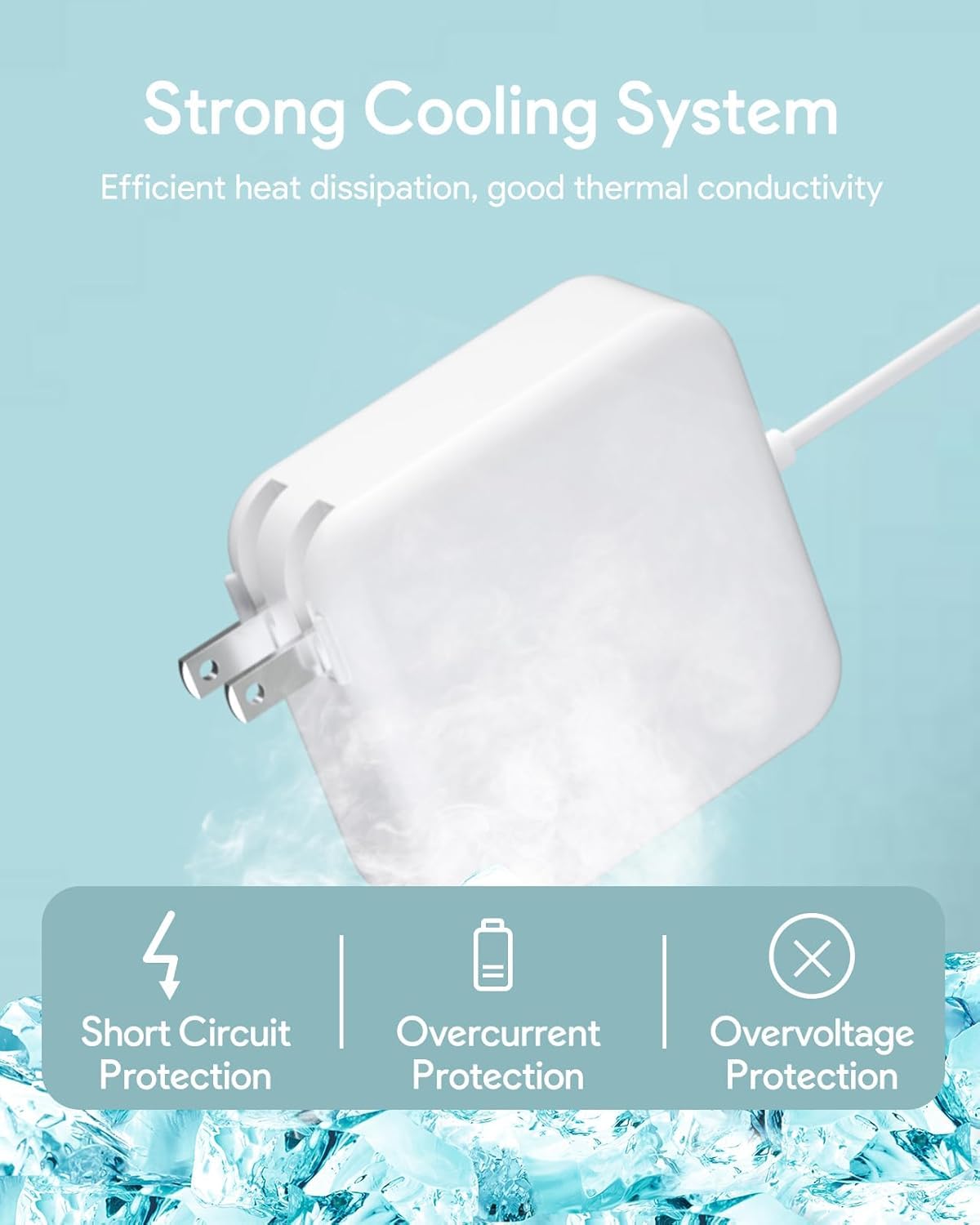 【Safety & Reliable】Every hardware of our mac pro charger is made of high-quality material, can charge your device as efficiently as the original charger. Built-in IC chip technology provides over-current, over-heat, short-circuit, overload protection.