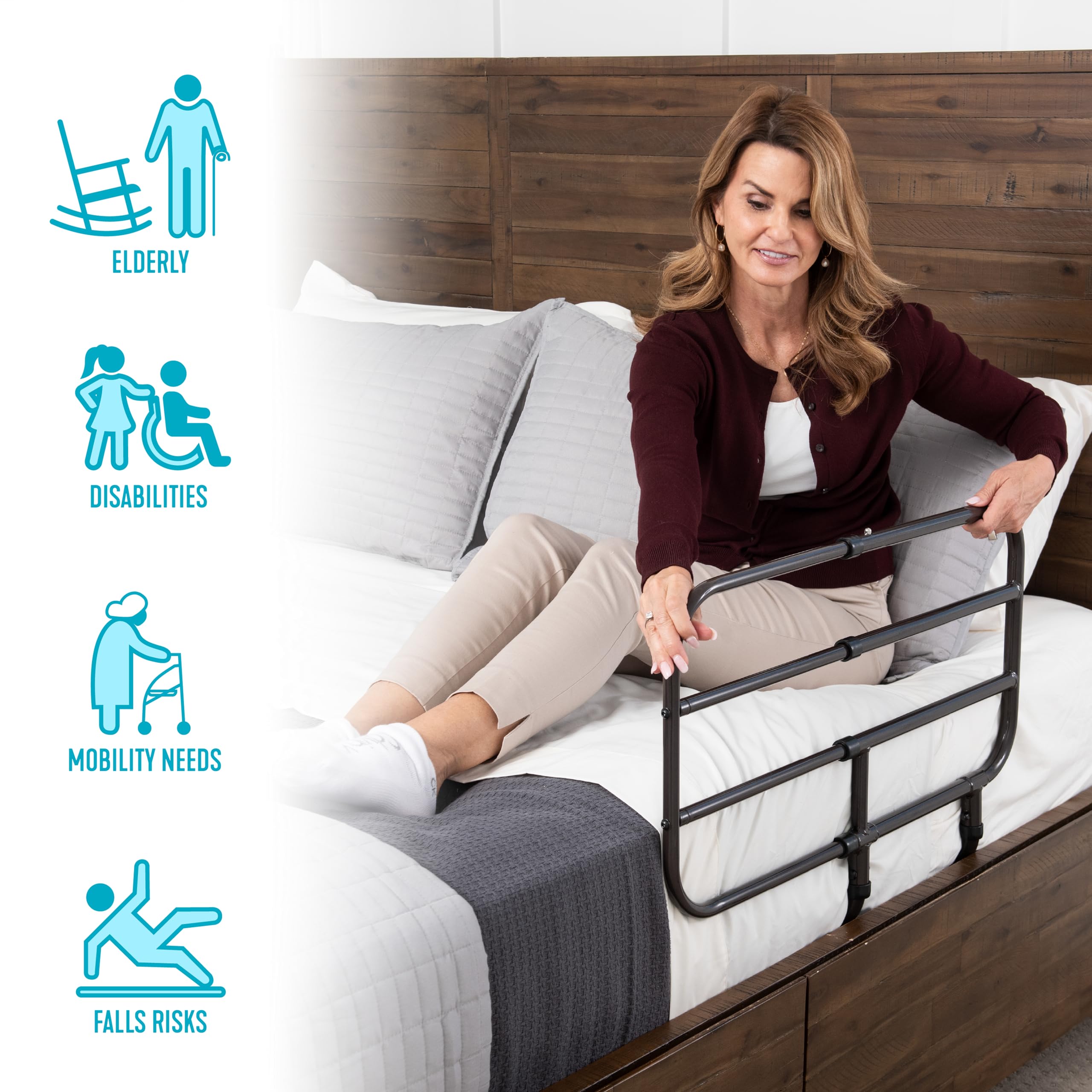 Reliable Support Handle: Designed to promote independence, the sturdy bedside support bar provides balance and safety for getting in and out of bed; built to support 300 pounds, it ensures reliable assistance for added confidence and security