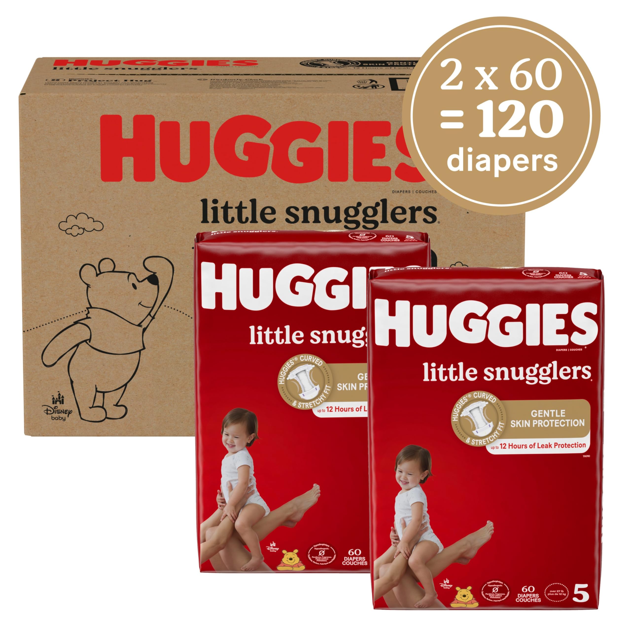 Huggies Size 5 Diapers: 120 Little Snugglers Baby Diapers (2 packs of 60), size 5 (27+ lbs)