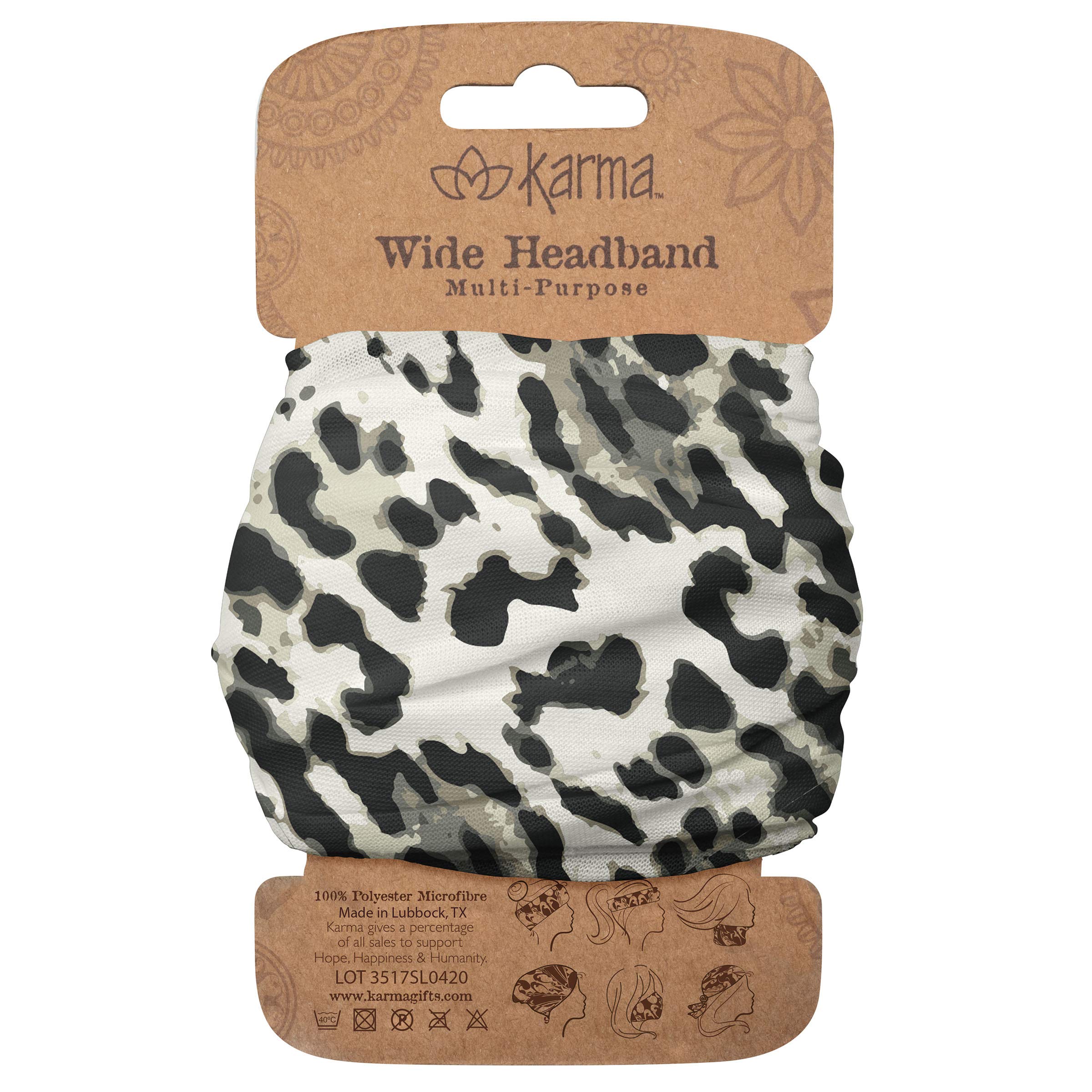 Display your distinctive style and keep your hair in place with our Leopard Headband for Women. Find your perfect match with multiple colors, designs, and patterns explicitly created for Karma by hand-picked artists. They stay in place and won't slip off your head while wearing them to the beach, gym, hiking, or shopping. This versatile hair bandana can be worn in multiple ways, wrap it around your wrist as a bracelet, and use it as a ponytail holder, scarf, or face cover. Our cloth headbands fit most sizes, are made from 100% polyester microfiber, and can be machine washed and dried quickly. We believe the value is in the details, and that's why we take pride in the finer points of each item we produce. Our collections of home décor, gifts, clothing, and more are designed to bring joy and unique style to each day.