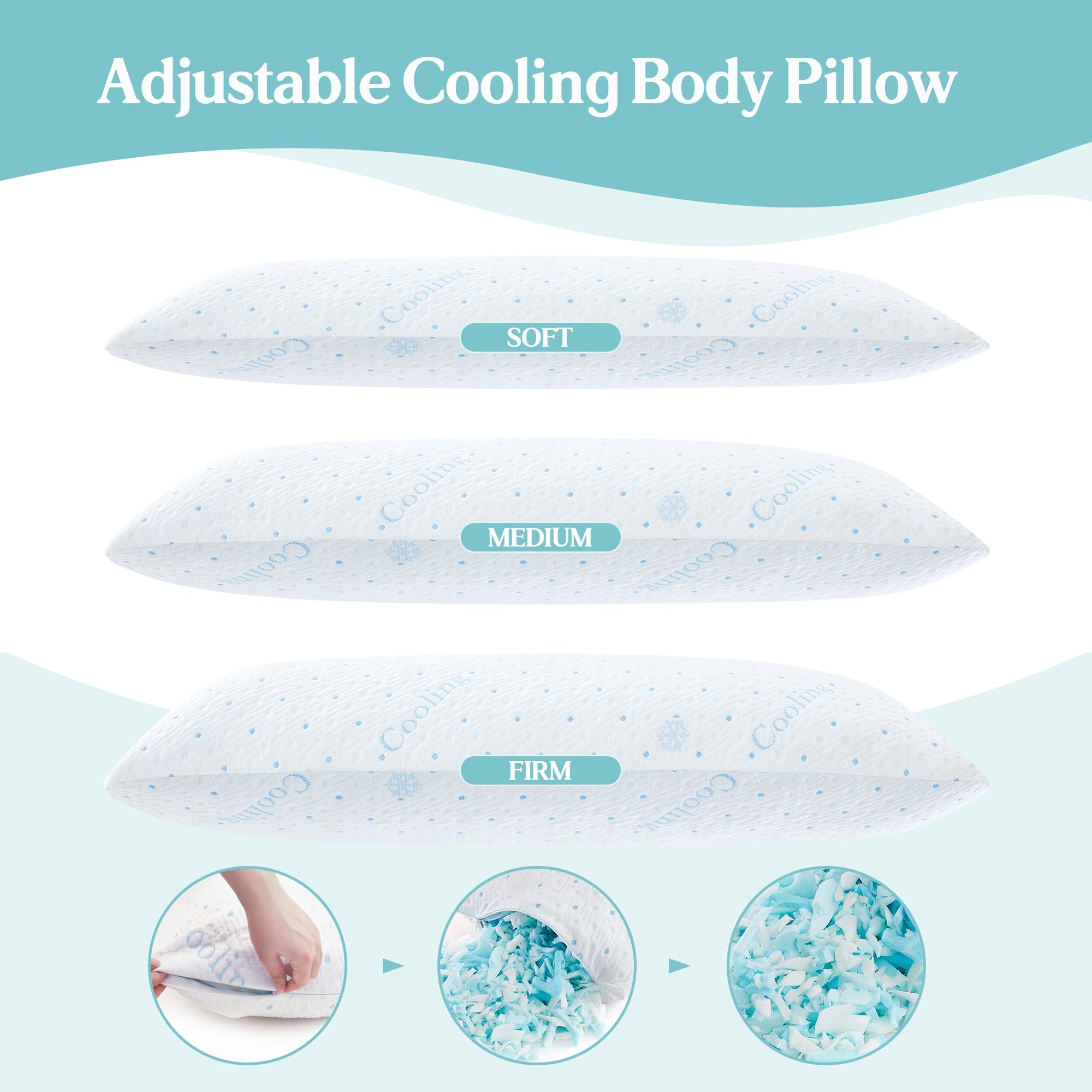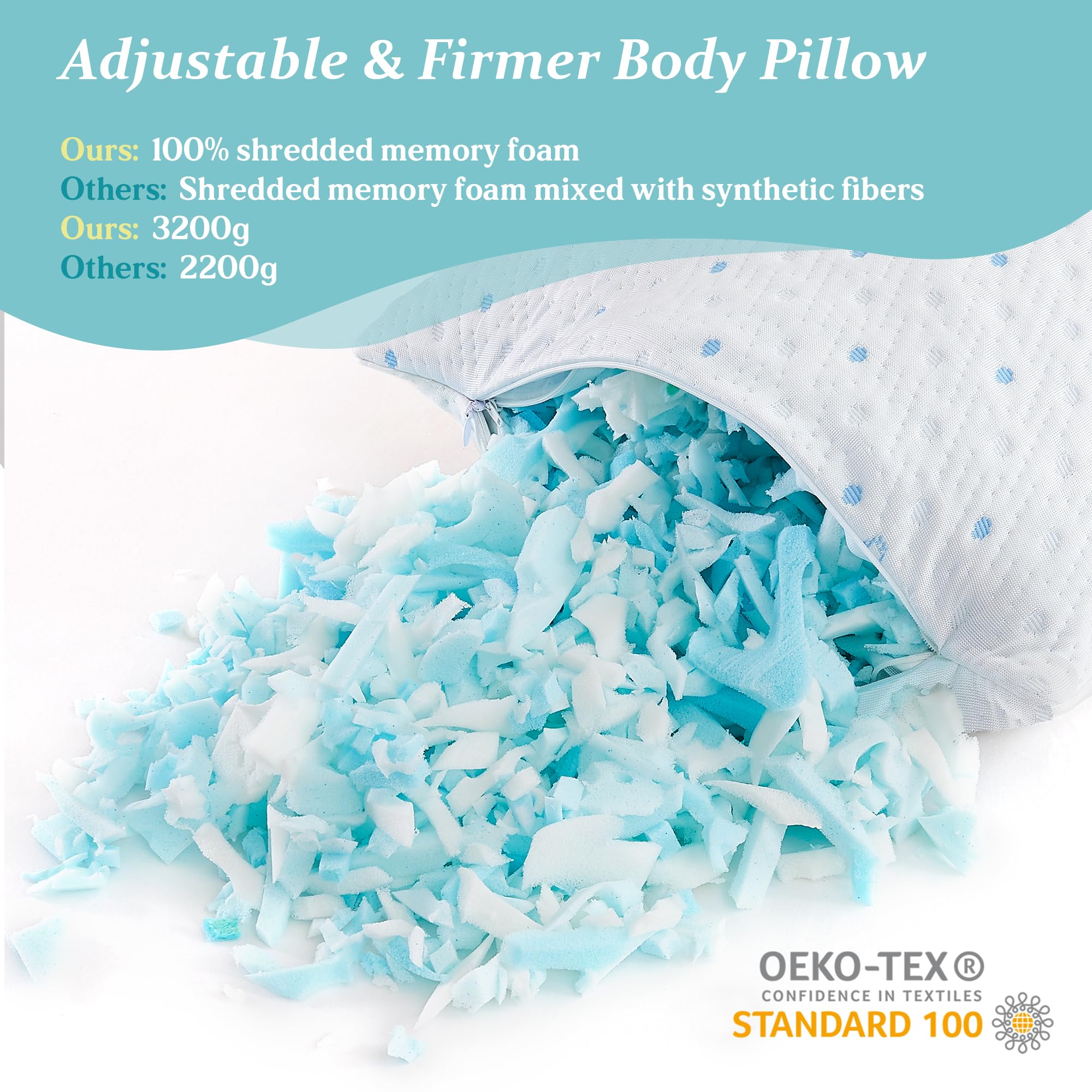 WAKE UP PAIN-FREE - Crafted with a premium mix of shredded memory foam and microfiber, our body pillow cooling cradles your neck, aligns spine, and supports your head for a pain-free sleep. Enjoy waking up rejuvenated every morning