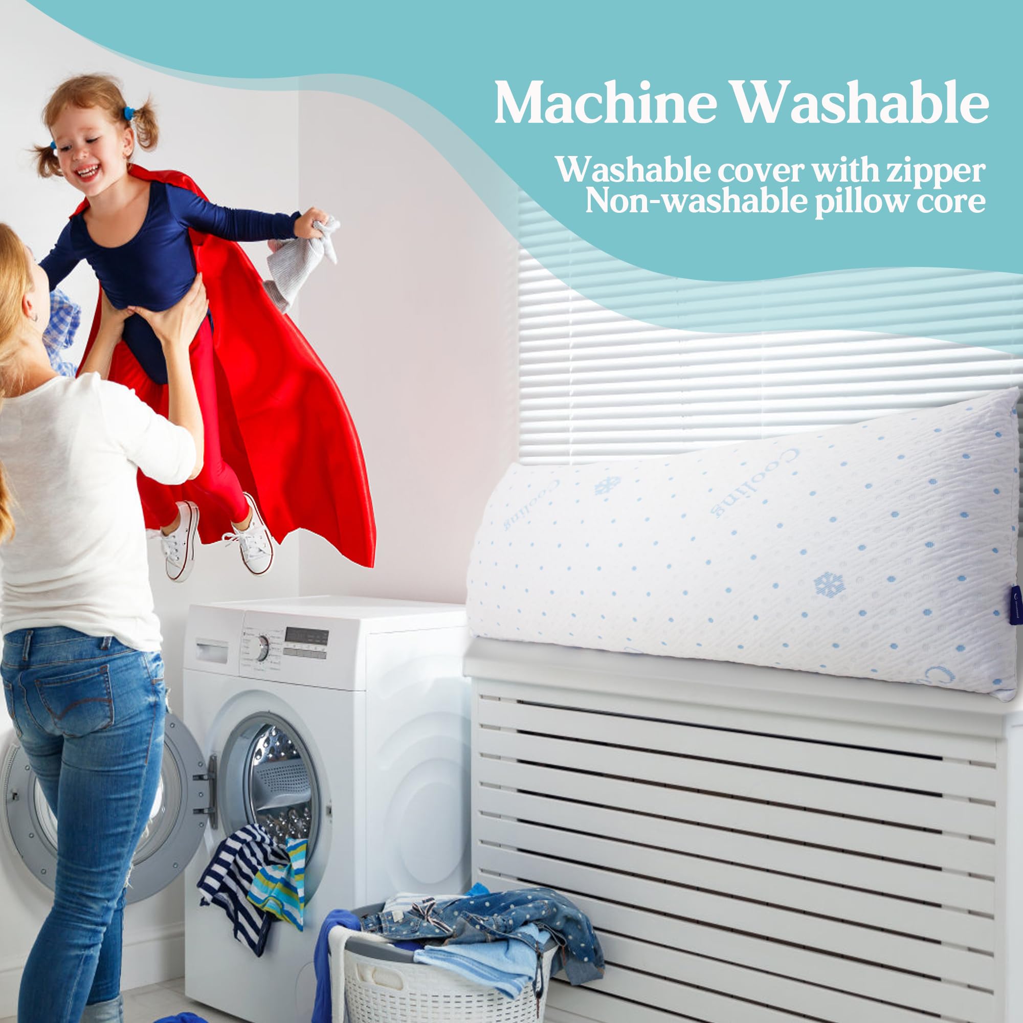 PILLOW CARE INSTRUCTIONS - Let your body pillows for sleeping air out for 24 hour to fluff up. Place it in a ventilated area if there's a new foam smell(a slight odor is normal with new foam). For easy cleaning, the body pillow pillowcase is machine washable; just avoid washing the inner pillow and drying the case to preserve its plushness and cool texture