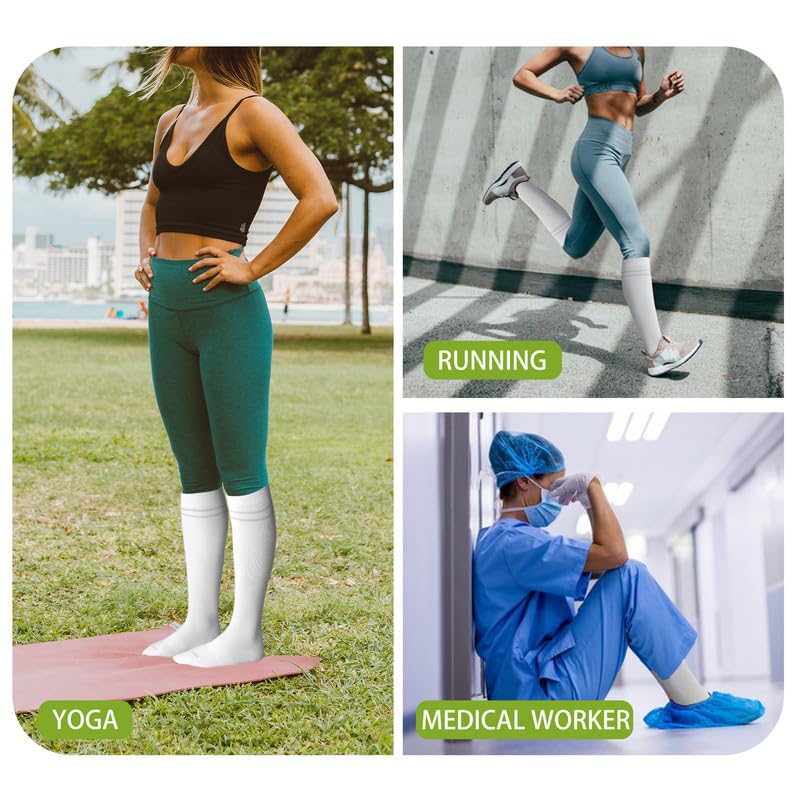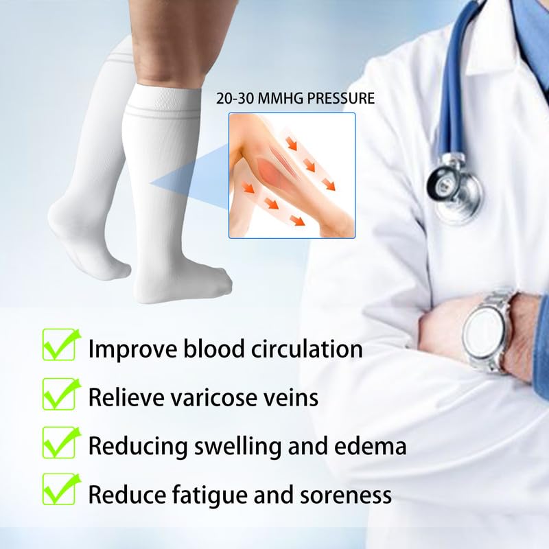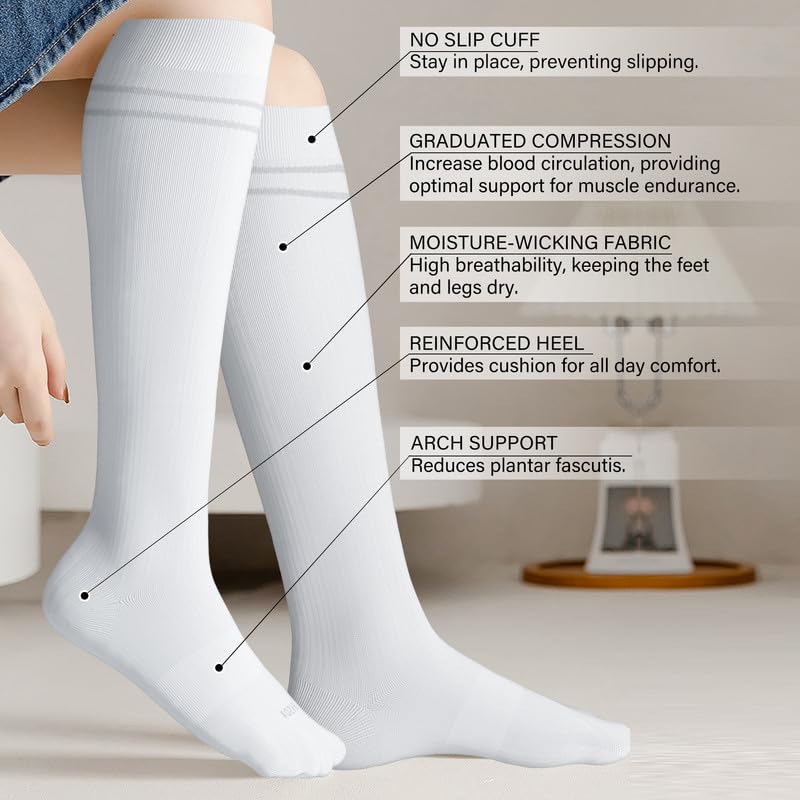 Medical Compression Socks: Compression socks for women 20-30 mmhg knee high offer significant medical benefits, such as reducing swelling and edema, managing varicose veins, etc. These compression stockings are especially helpful for individuals who stand for long shift work, medical professionals, pregnant women, and long flights.