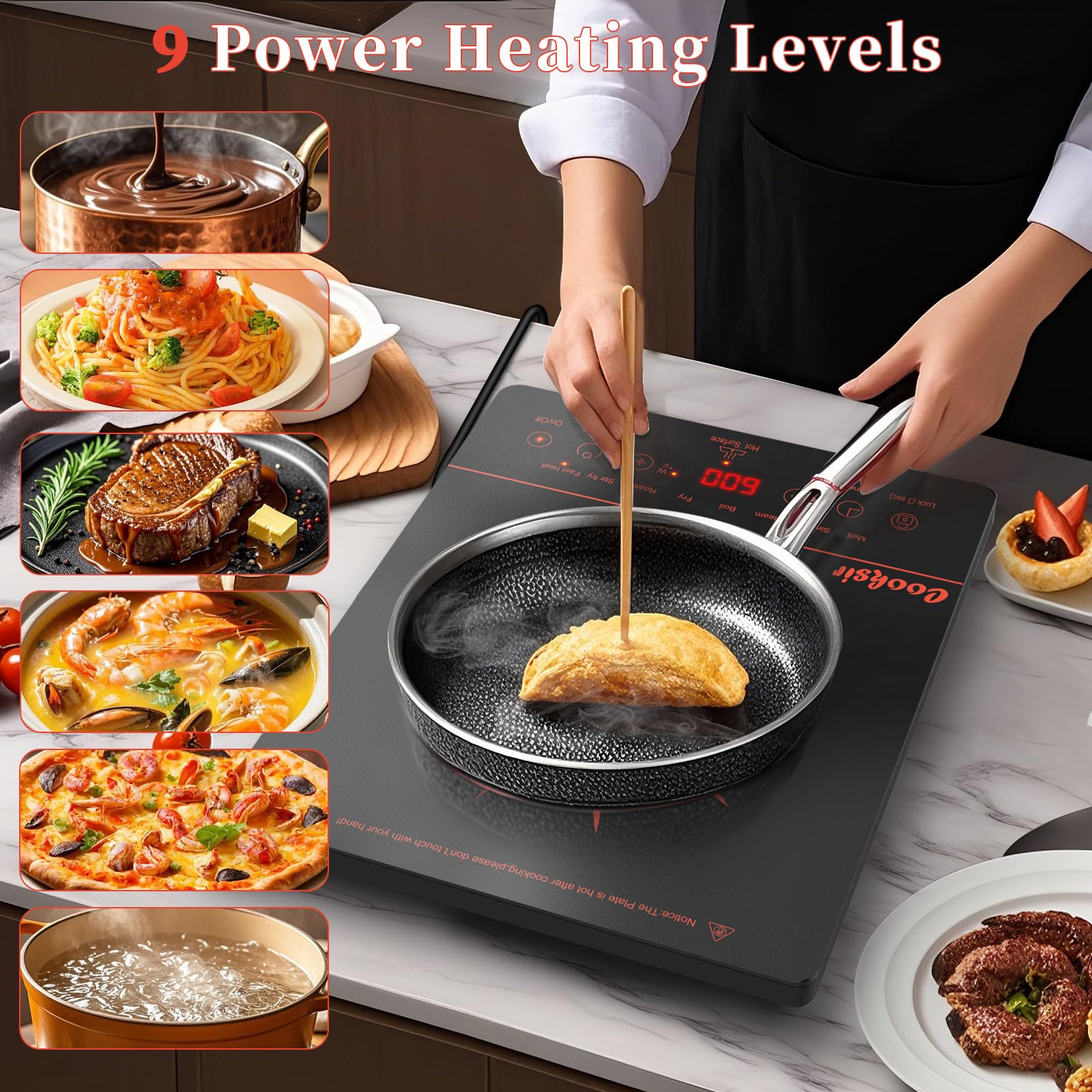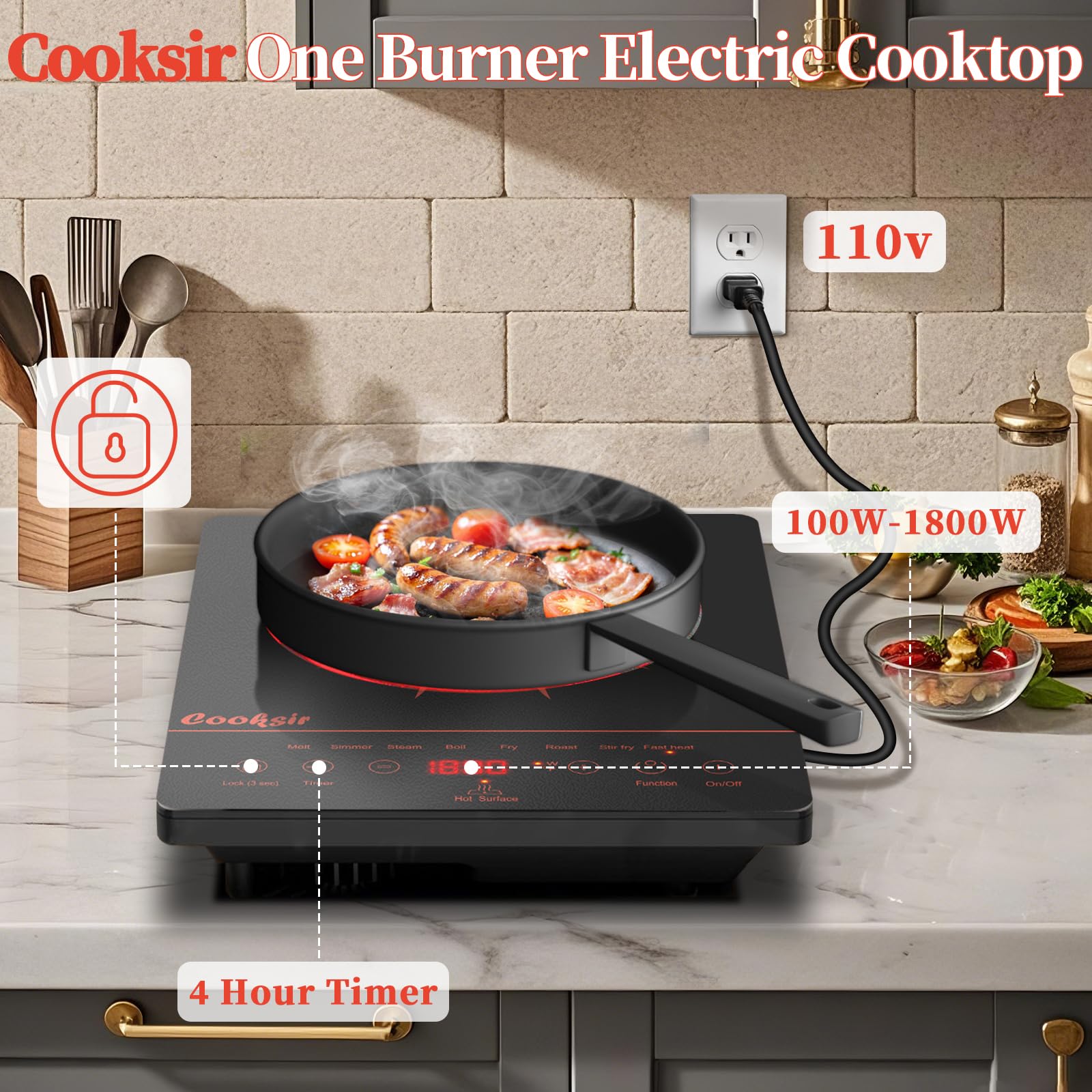 【Portable and Compact】 Cooksir portable electric cooktop with sensor touch control, through the light and sensitive touch screen you can operate it more easily and quickly. Its small size is easy to move and store, does not take up much space and is suitable for family with little space in the kitchen and for use when camping.