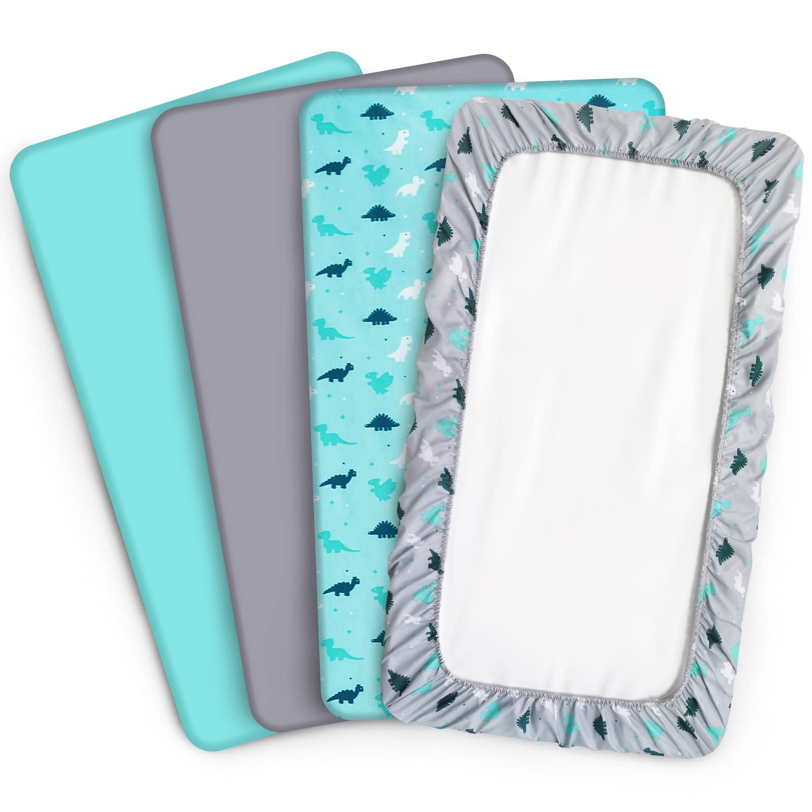 Super Soft & Quantity Options: These pack and play sheets 4 Pack have been carefully selected to be soft and breathable. No matter boy or girl, you can always find the best choice to match your playard bedding. We offer whales, dinosaurs, ocean, horses, pink, white, gray, aqua cute print. True to color. True to size.