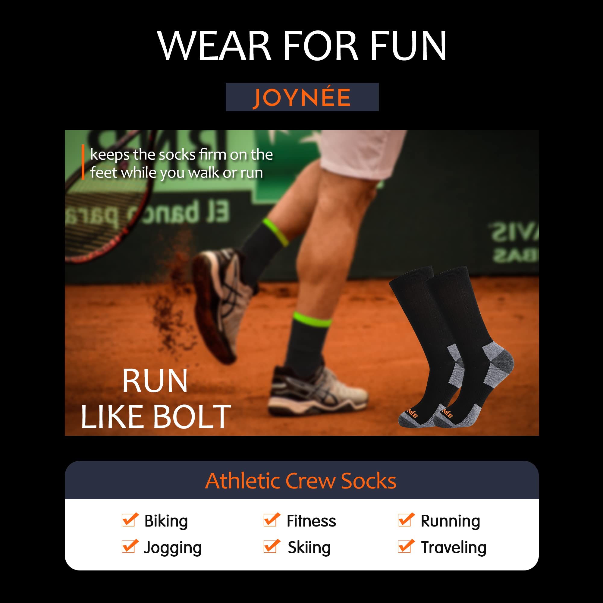 QUALITY MEN'S SOCKS: Made of 97% polyester,3% spandex. Our men's crew socks are strong, durable and breathable enough to keep your skin to keep you dry and comfort. Moisture transport system wicks sweat away from the body.