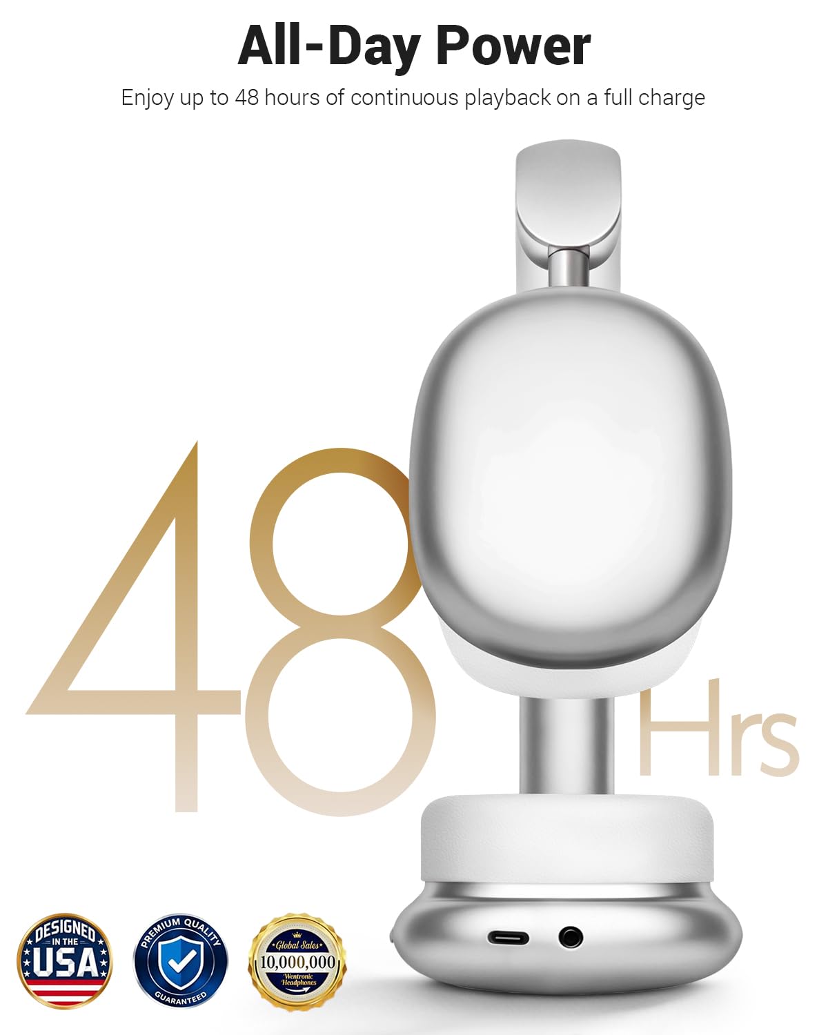 Up to 48 Hours Playtime & Dual Modes - Enjoy up to 48 hours of continuous playtime on a single charge. When the battery runs low, simply plug in the included 3.5mm audio cable to switch seamlessly from wireless to wired mode—ensuring your music never stops, even on long journeys.