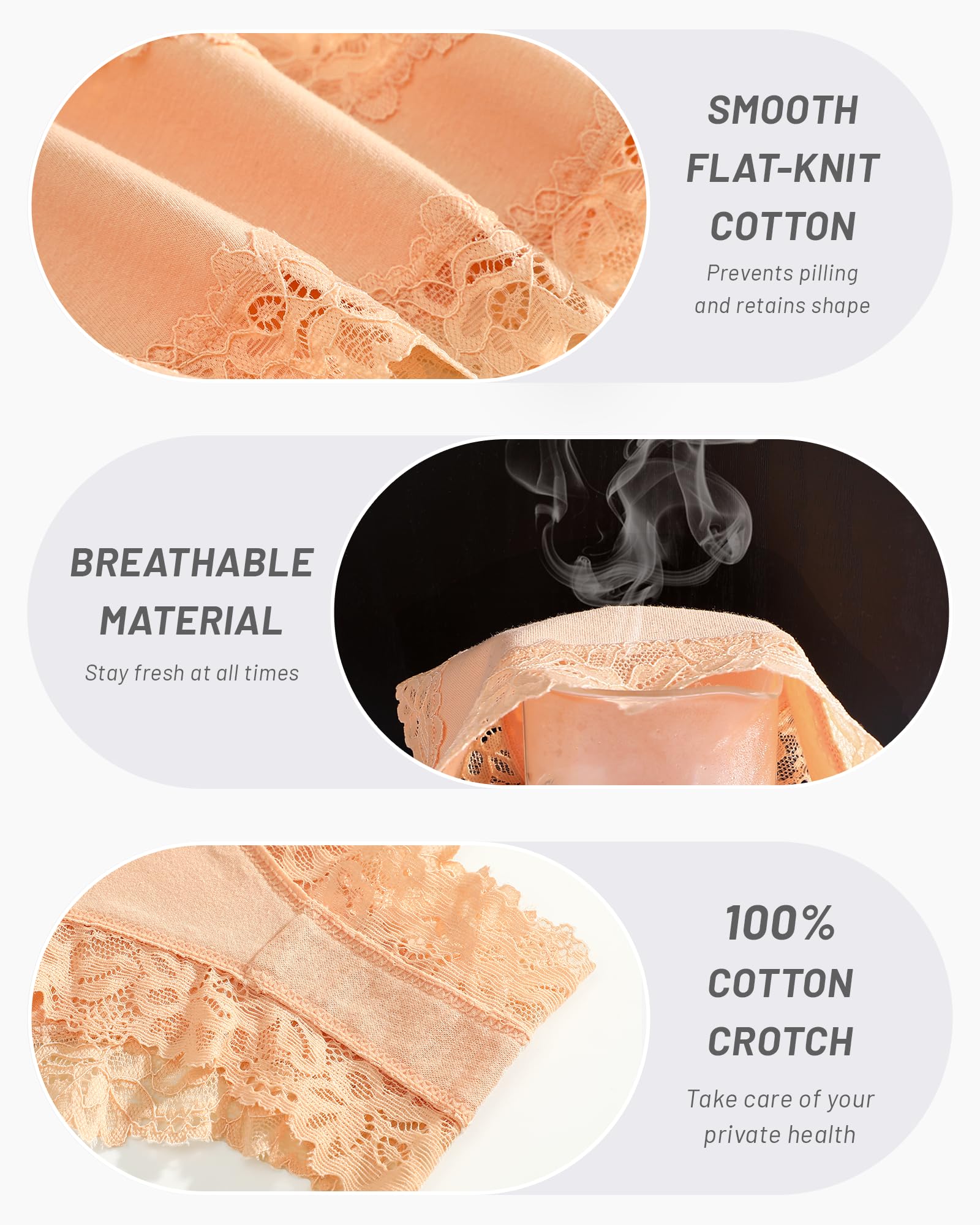 Cotton Underwear for Women: Made with 95% cotton + 5% elastane, this blend is softer and stretchier than 100% cotton. The plain weave cotton fabric is lightweight, durable, and gentle on sensitive skin.