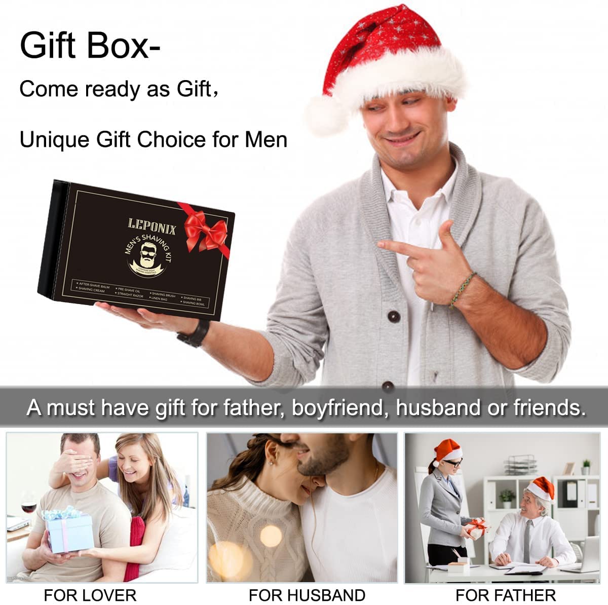 Great Value Contains 7 Shaving Essentials: One stop station men’s grooming gift set with every shaving pieces you need! Including: straight barber razor with 4 replacement blades/shaving brush/sandalwood pre-shave oil/shaving butter/after shave balm /beard shaving soap for traveling. Delivers a close comfortable shave on your daily groomming
