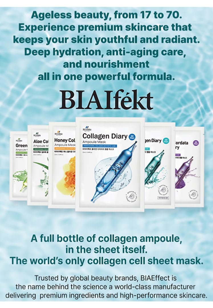 Sheet itself infused with whole bottle of collagen ampoule , stretched collagen from the sheet.