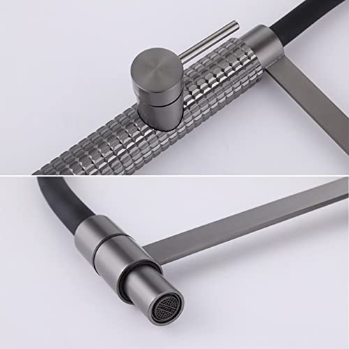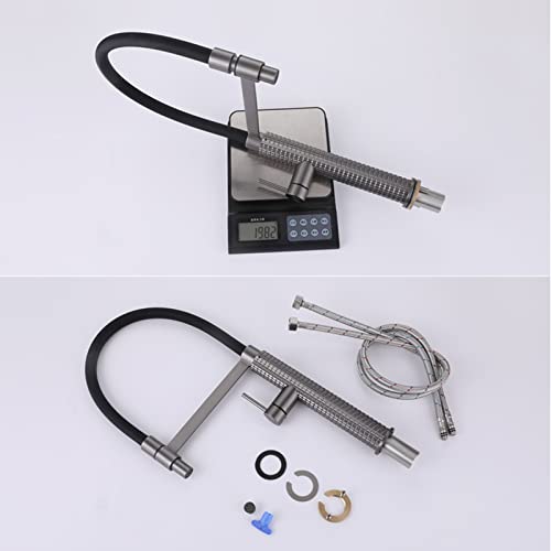 ❤ Material: Solid brass kitchen faucet features anti-corrosion and rustproof, with food-grade pull out silicone pipe, create more clean healthier water for you. Gun grey finish, build to resist scratches and tarnishing, clean faucet by cloth is enough in daily use
