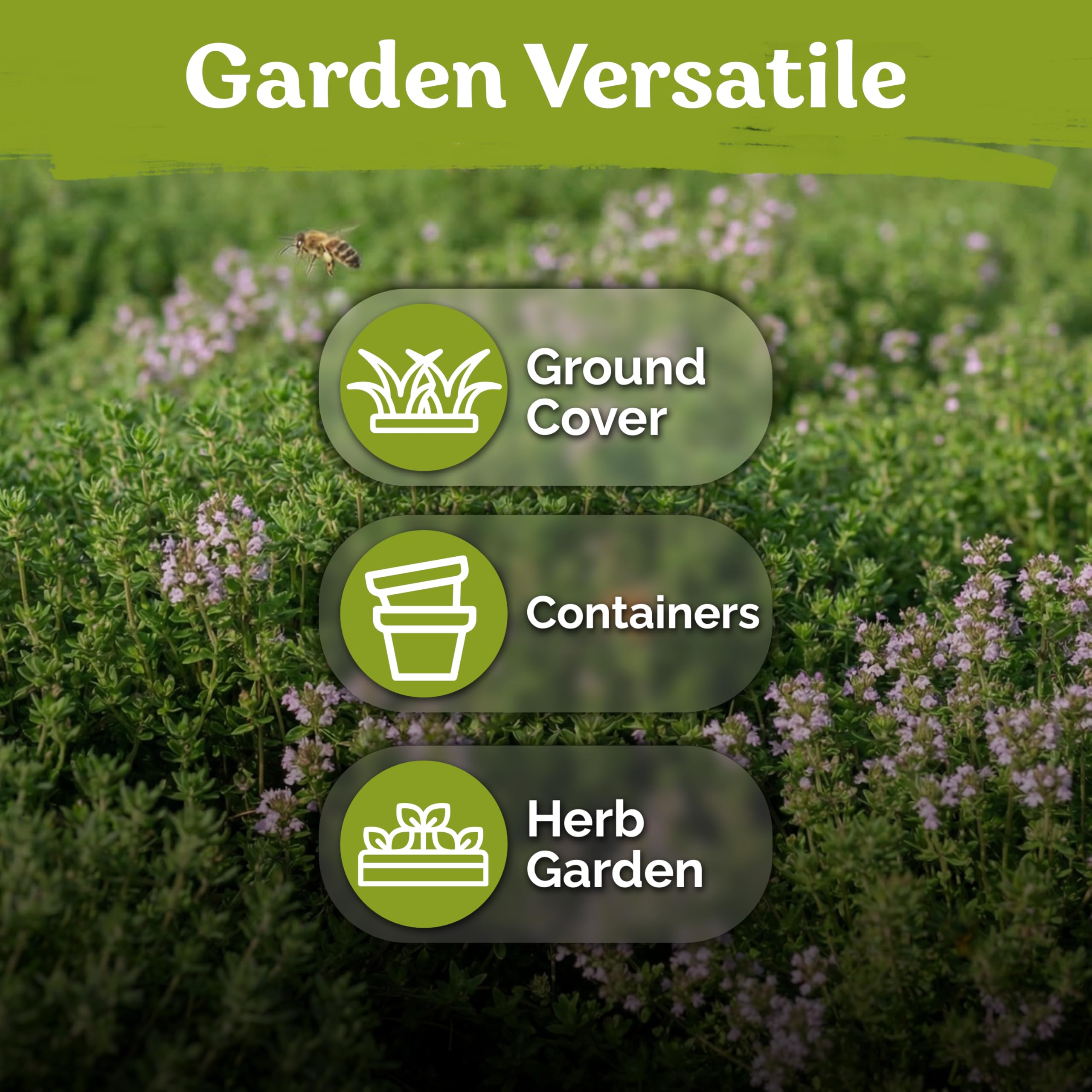 Cold-Hardy & Durable: creeping thyme perennial withstands winters and remains lush. Perfect perennial flower seeds to plant outside in home garden, thriving minimal care - best plant spacing 18-24".