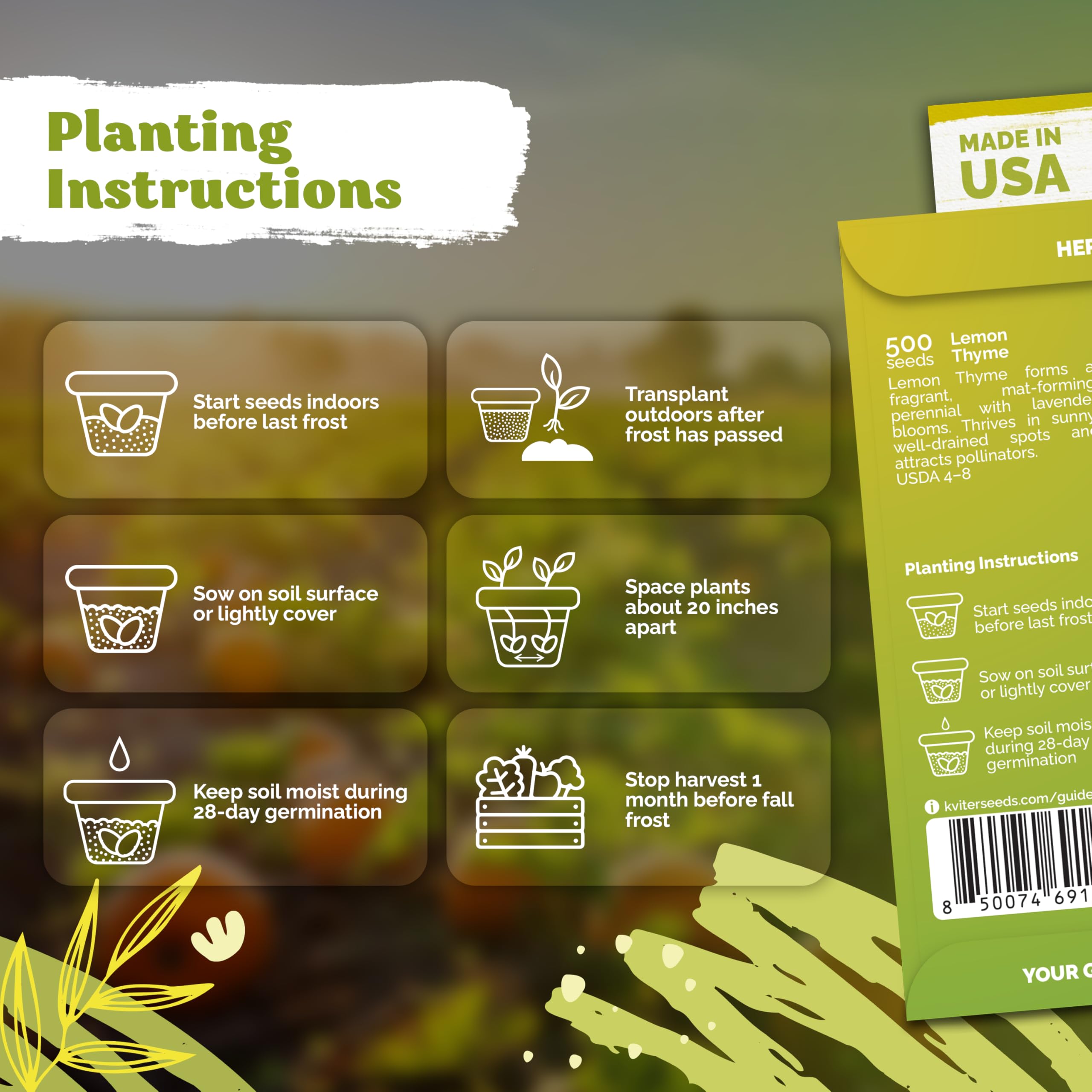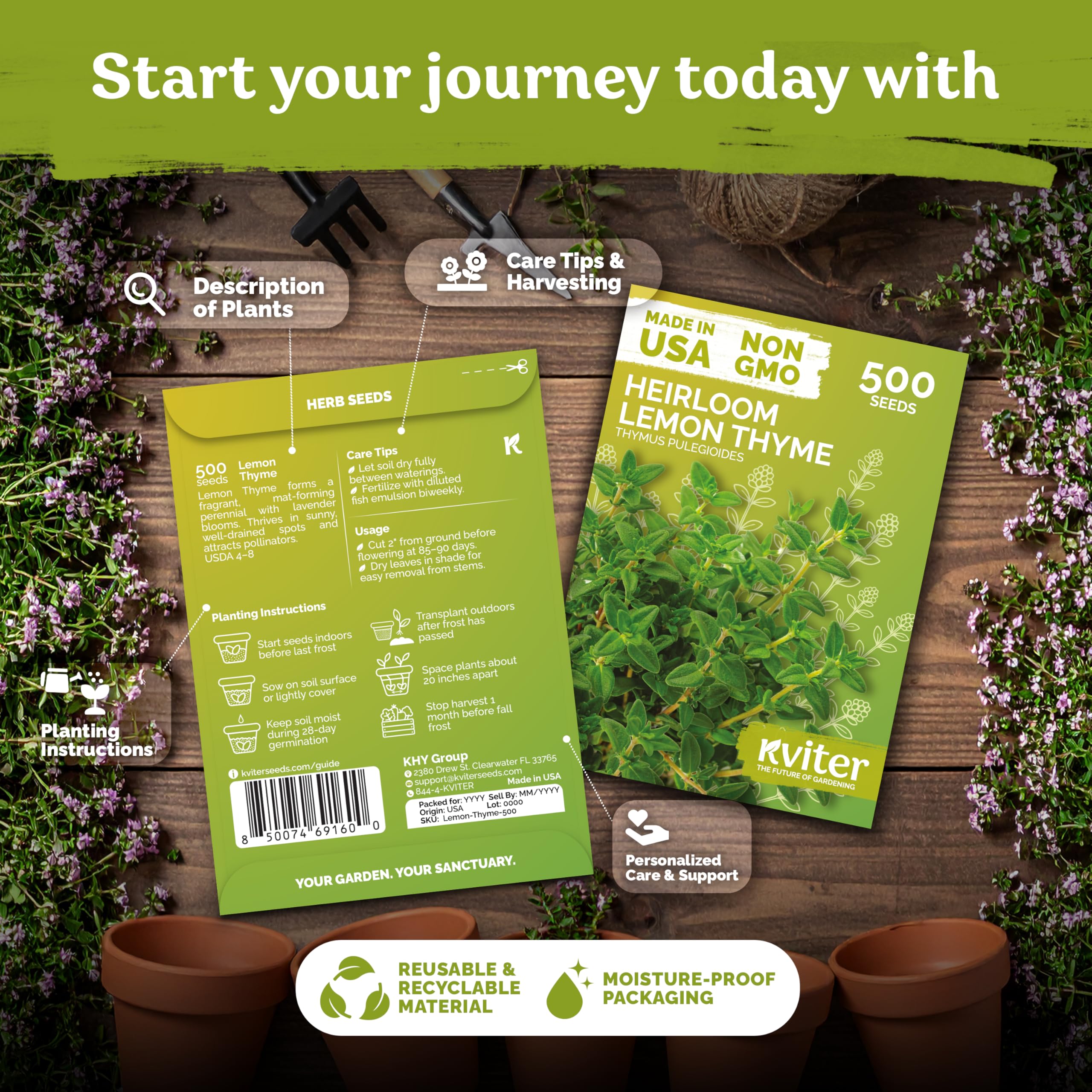 Aromatic Flavor: Our lemon thyme seeds for planting bring a zesty twist to any kitchen garden. Germinates in 7–14 days at full sun, reaching 6–12 inches tall in USDA zones 3–10.