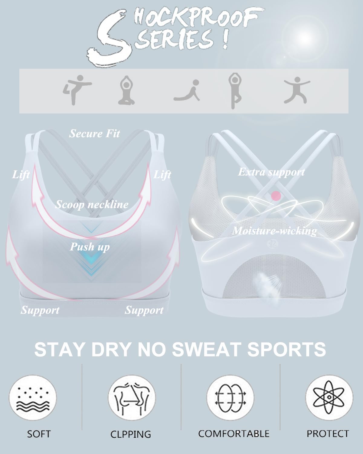 √MEDIUM SUPPORT- Perfect for A/B cups, Light compression sits close to keep everything in place and minimizes bounce, elastic band underneath, prevent rolling up. Whether you're running a 10k or just running some errands, the sports bras for women high impact will serve your lifestyle's needs. Perfect for tennis, running, yoga,workout or whatever else you throw at it.