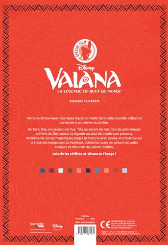 Retrouve 50 nouveaux coloriages mystères inédits dans cette nouvelle collection consacrée à un univers ou un film. De Tui à Sina, en passant par Pua, Tala ou encore Hei Hei, tous les personnages incontournables du film Vaiana, la légende du bout du monde sont présents. Balade-toi sur les magnifiques plages de Motunui avec Vaiana et embarque sur la trace des navigateurs du Pacifique. Colorie les cases en suivant les codes couleurs et découvre des scènes inédites. 1 - CHOISIS TES OUTILS - crayons de couleur, marqueurs à base d'eau ou marqueurs acryliques 2 - COLORIE LES NUMÉROS selon le code couleur pour révéler une magnifique illustration Disney ! 3 - PROFITE d'un moment de détente avec les livres de coloriage Hachette Heroes ! 50 PAGES DE COLORIAGES MYSTÈRES - pour des heures de divertissement GRAND FORMAT - le format 300 mm x 215 mm pour donner vie aux personnages PAPIER PREMIUM - pour éviter tout débordement UN CADEAU PARFAIT - pour les fans de Disney de tous âges