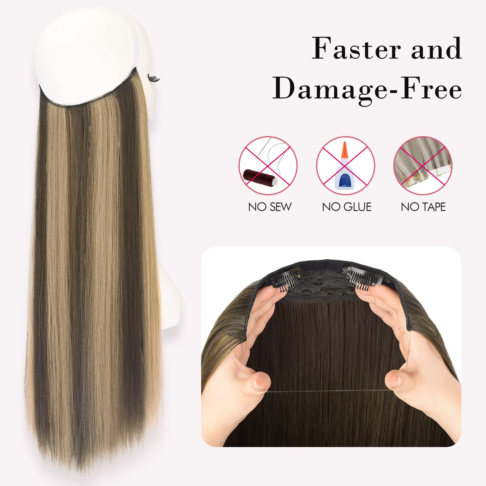 Easy to Apply: No tape, no glue, no sew, only need to position the easy wire hair extensions over your hair like a headband, taking less time for instantly thicker and longer hair without extra help in few minutes