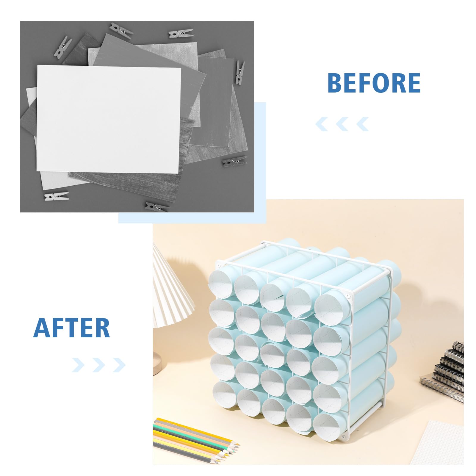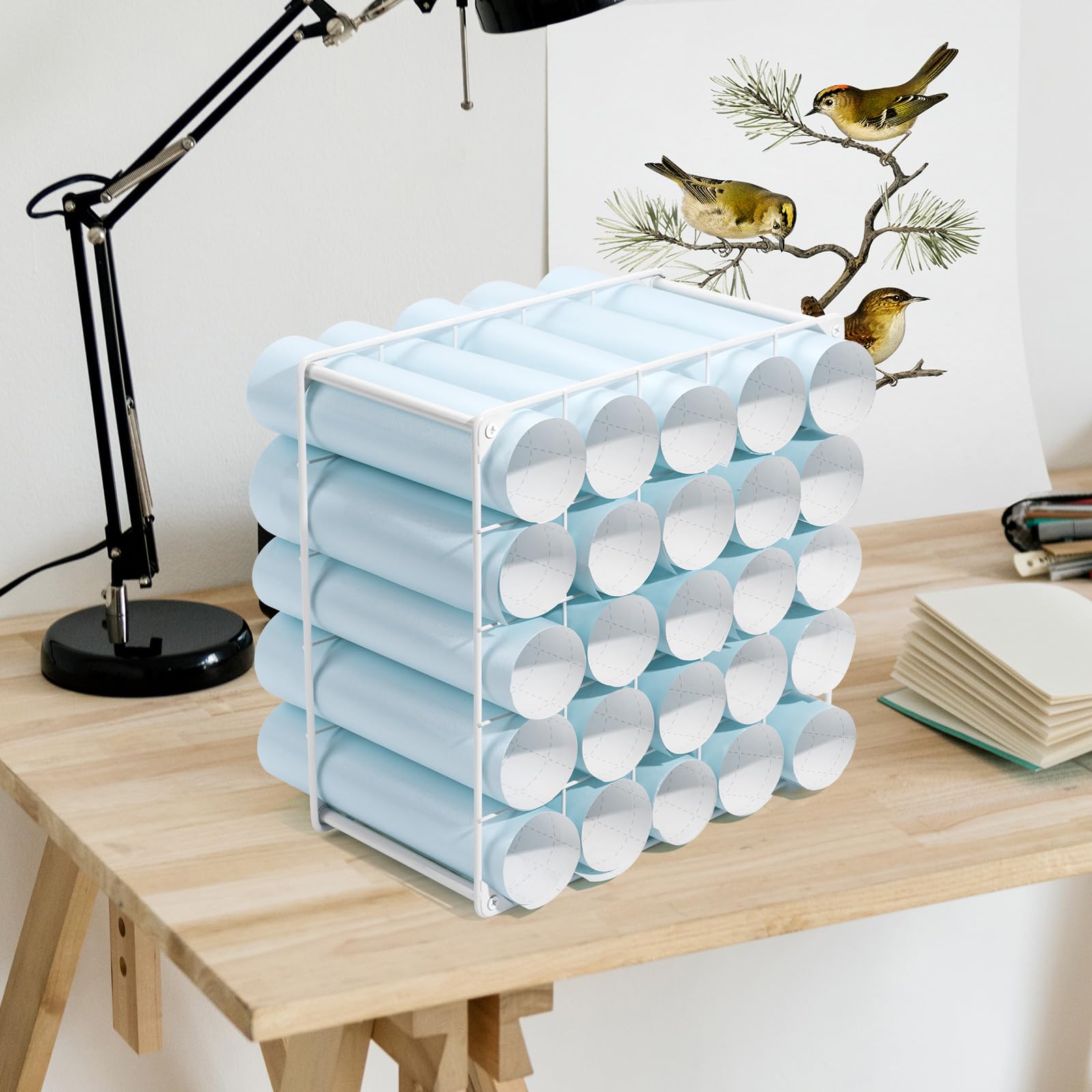 Large Capacity: Our product boasts a large capacity, capable of holding up to 25 vinyl rolls with a diameter of less than 2 inches. This makes vinyl roll storage convenient and efficient, accommodating various sizes vinyl rolls.Whether you're a professional artist or a hobbyist, this storage solution ensures that your materials are organized and easily accessible, saving you time and effort