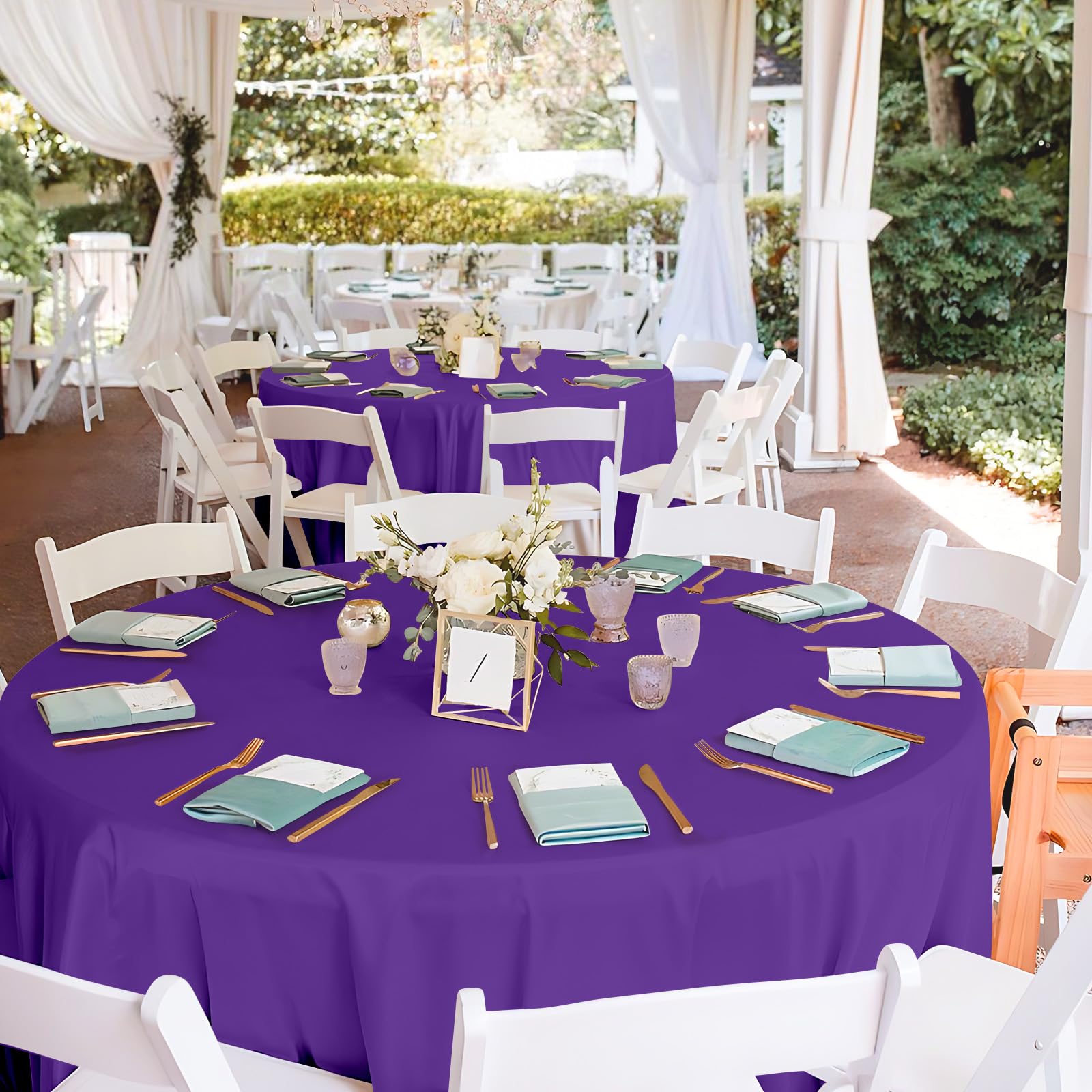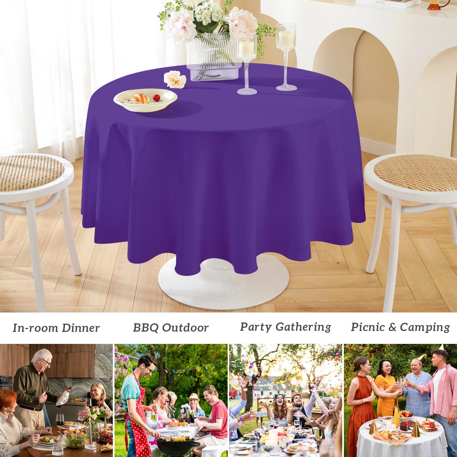 Excellent Quality: Purple round tablecloth for parties are made of premium durable PE material. Perfect for indoor-outdoor to provide a relaxed and minimalist space for dining and enjoying your party time