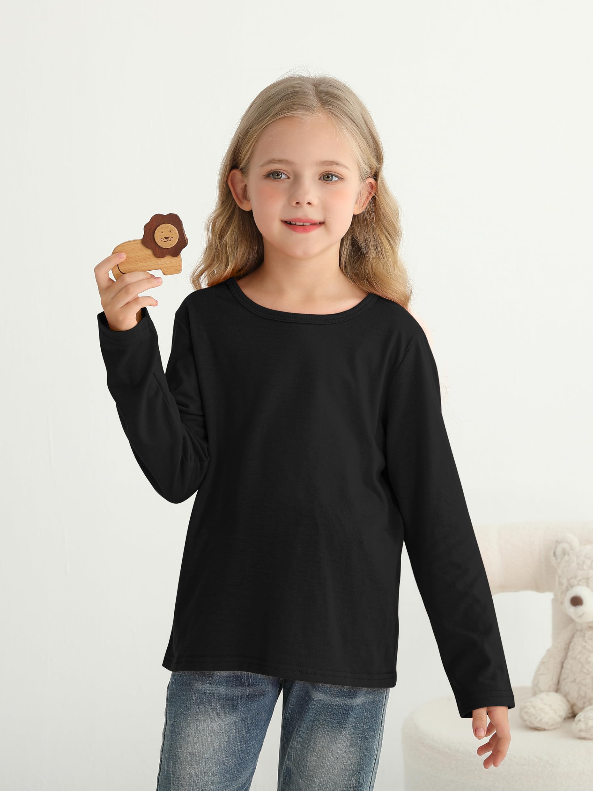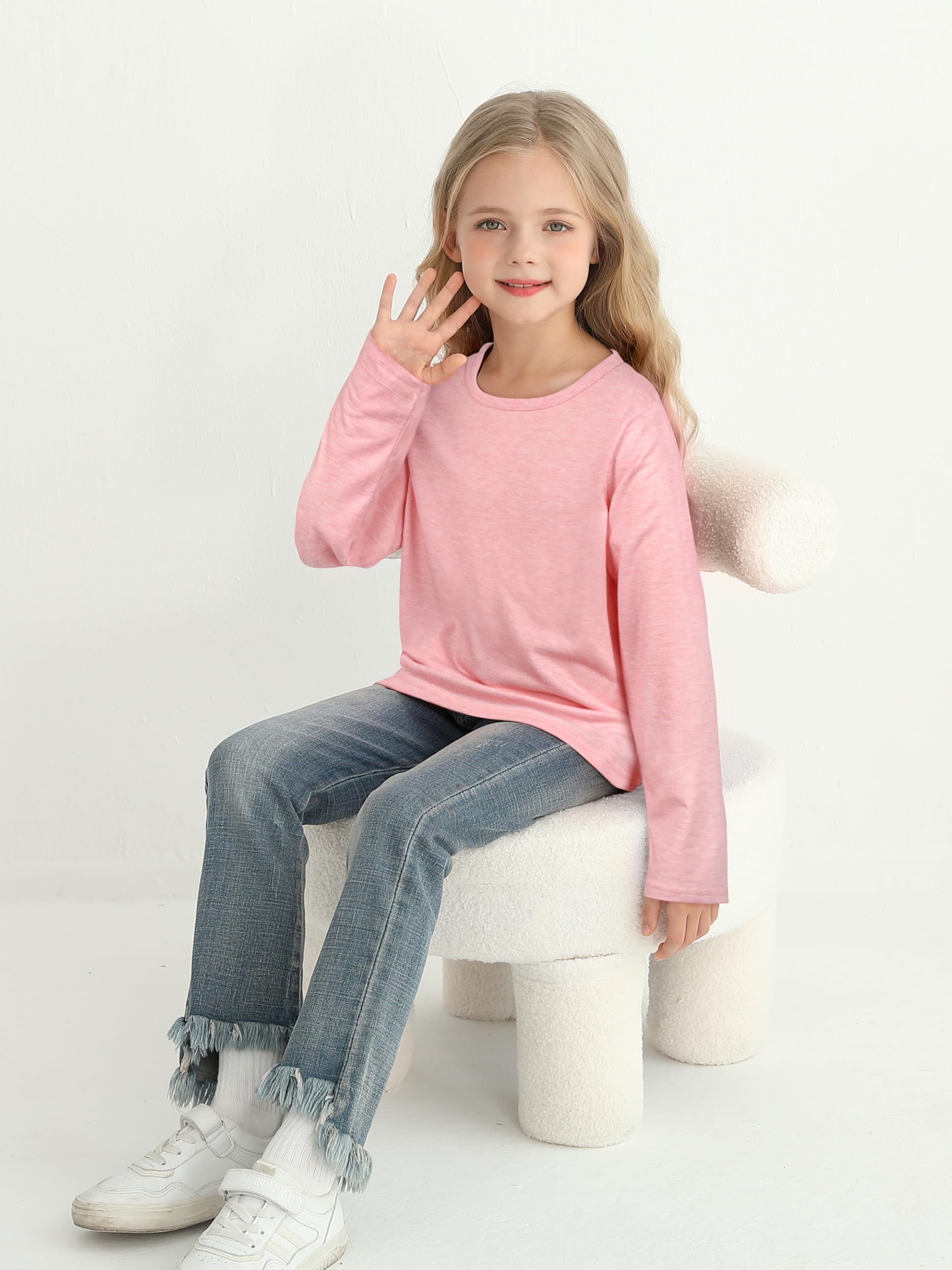 BASIC GIRLS' LONG SLEEVES: Classic basic design with clean and elegant solid colors, these girls' long sleeves are both timeless and fashionable, suitable for layering or wearing on their own during autumn and winter