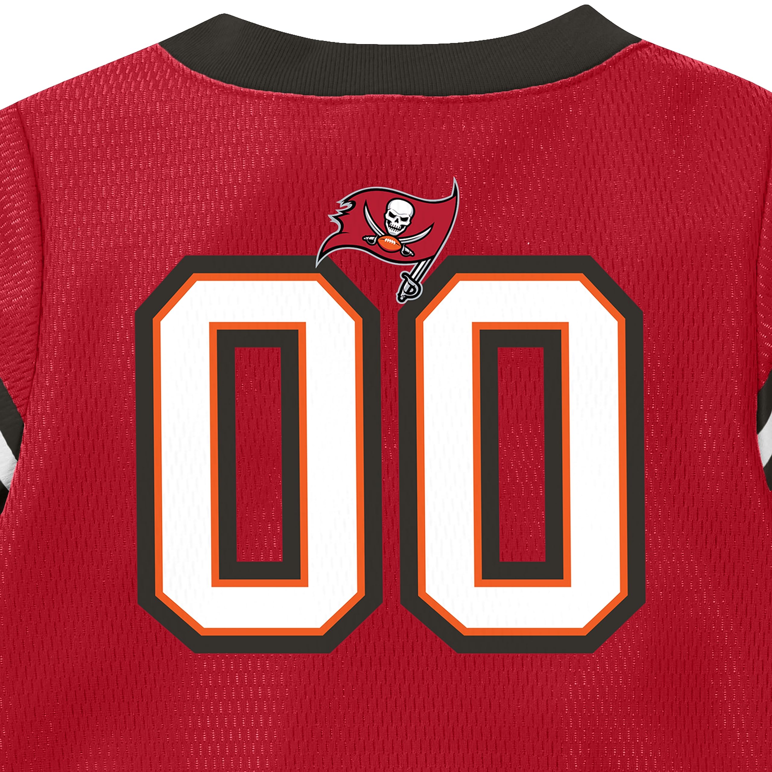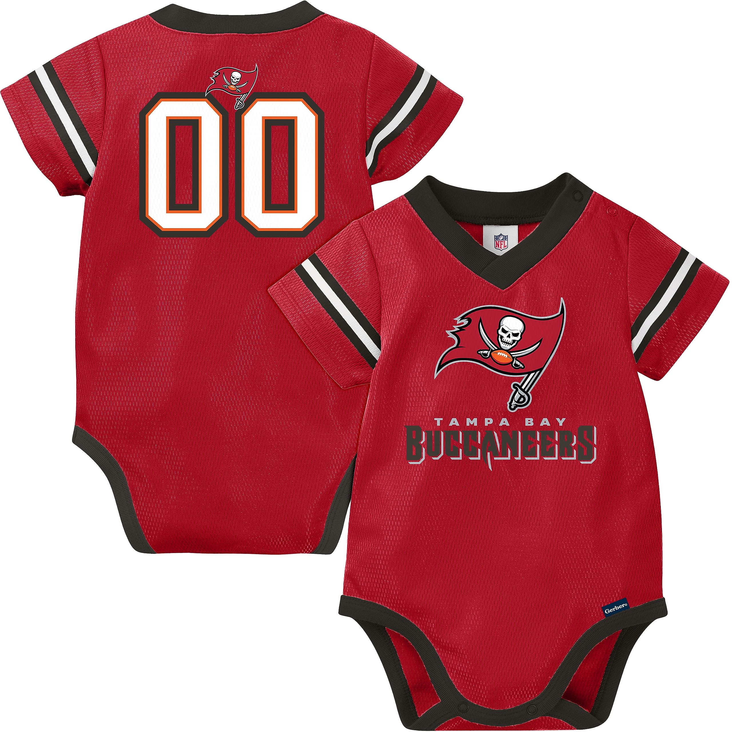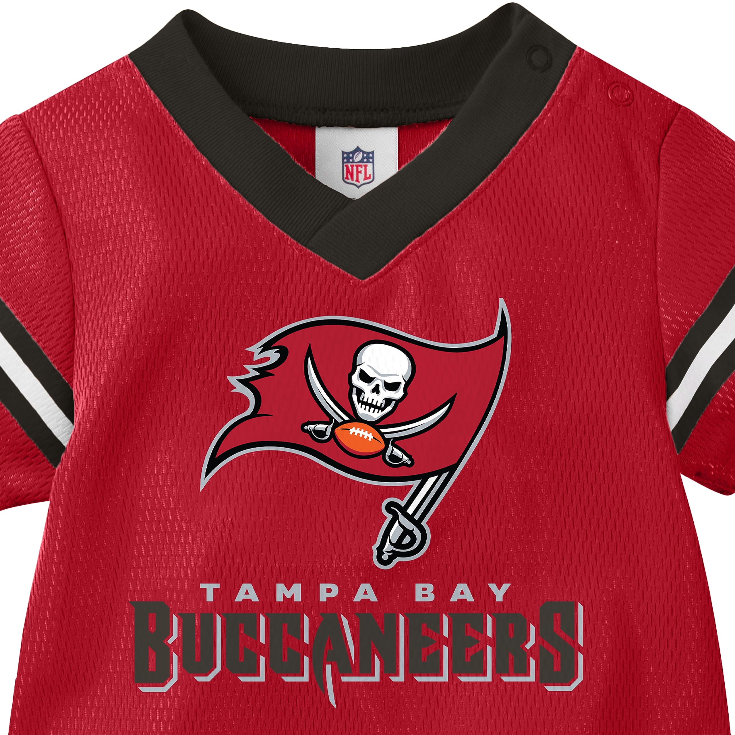 Team colors jersey-style bodysuit with Buccaneers screen print logo