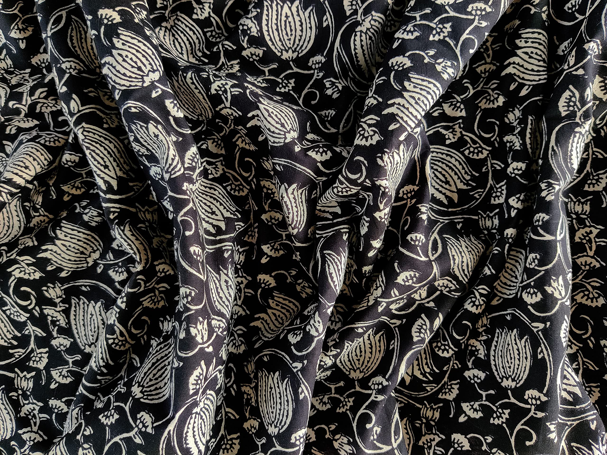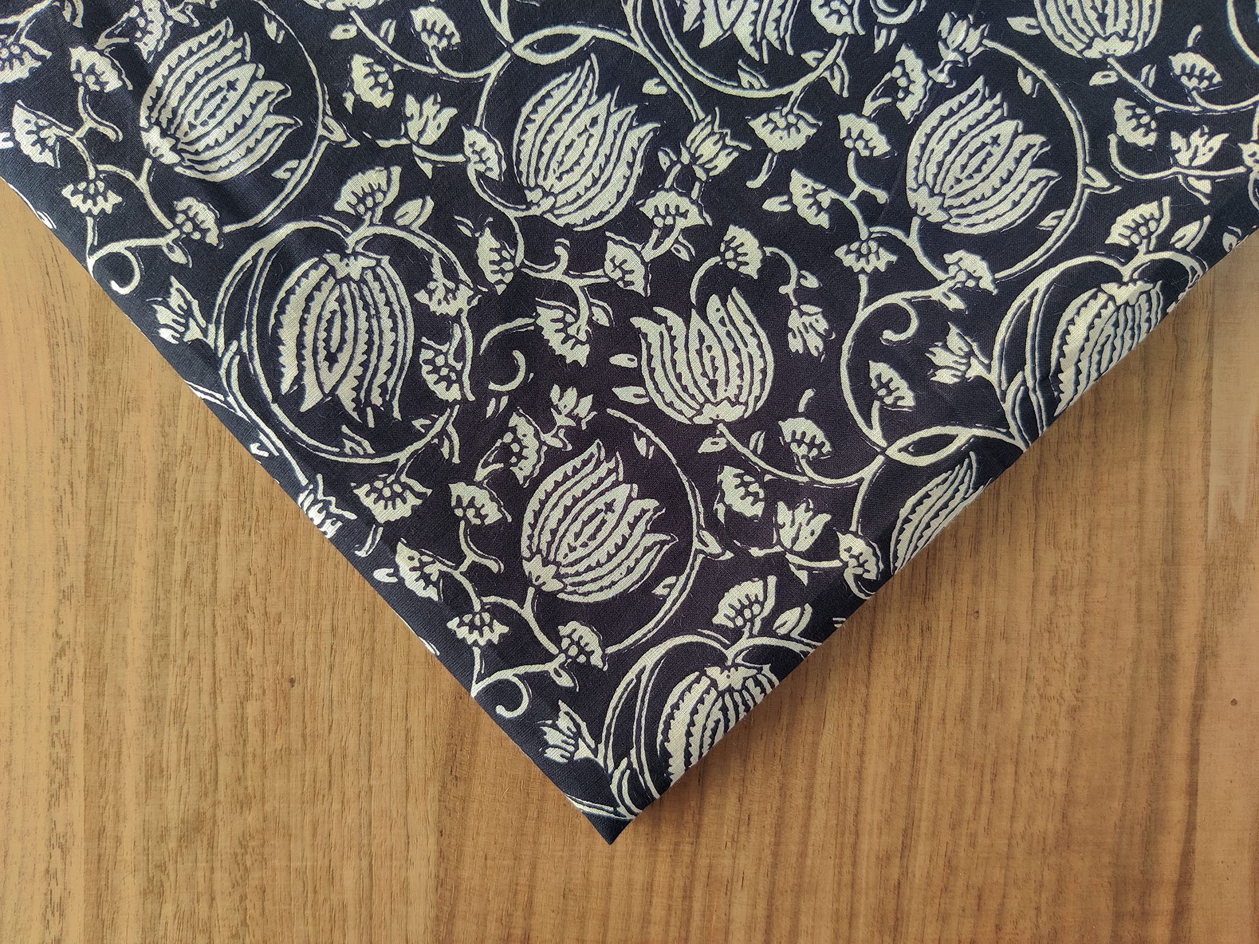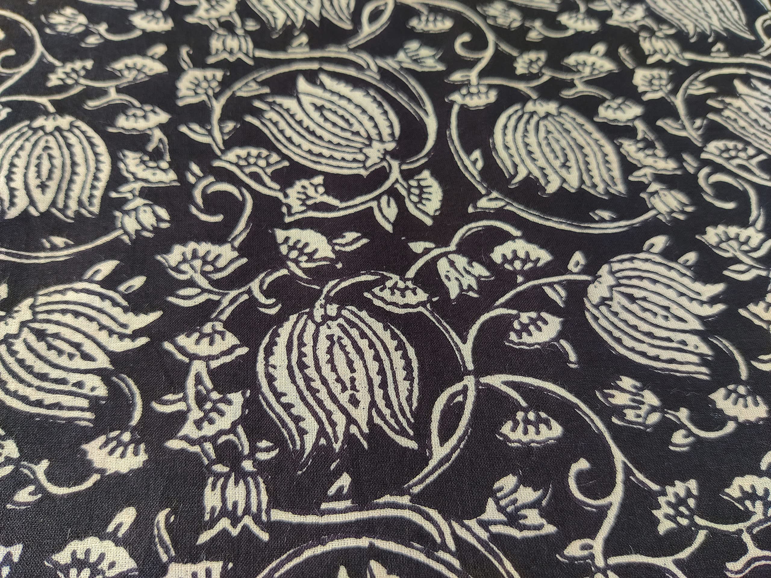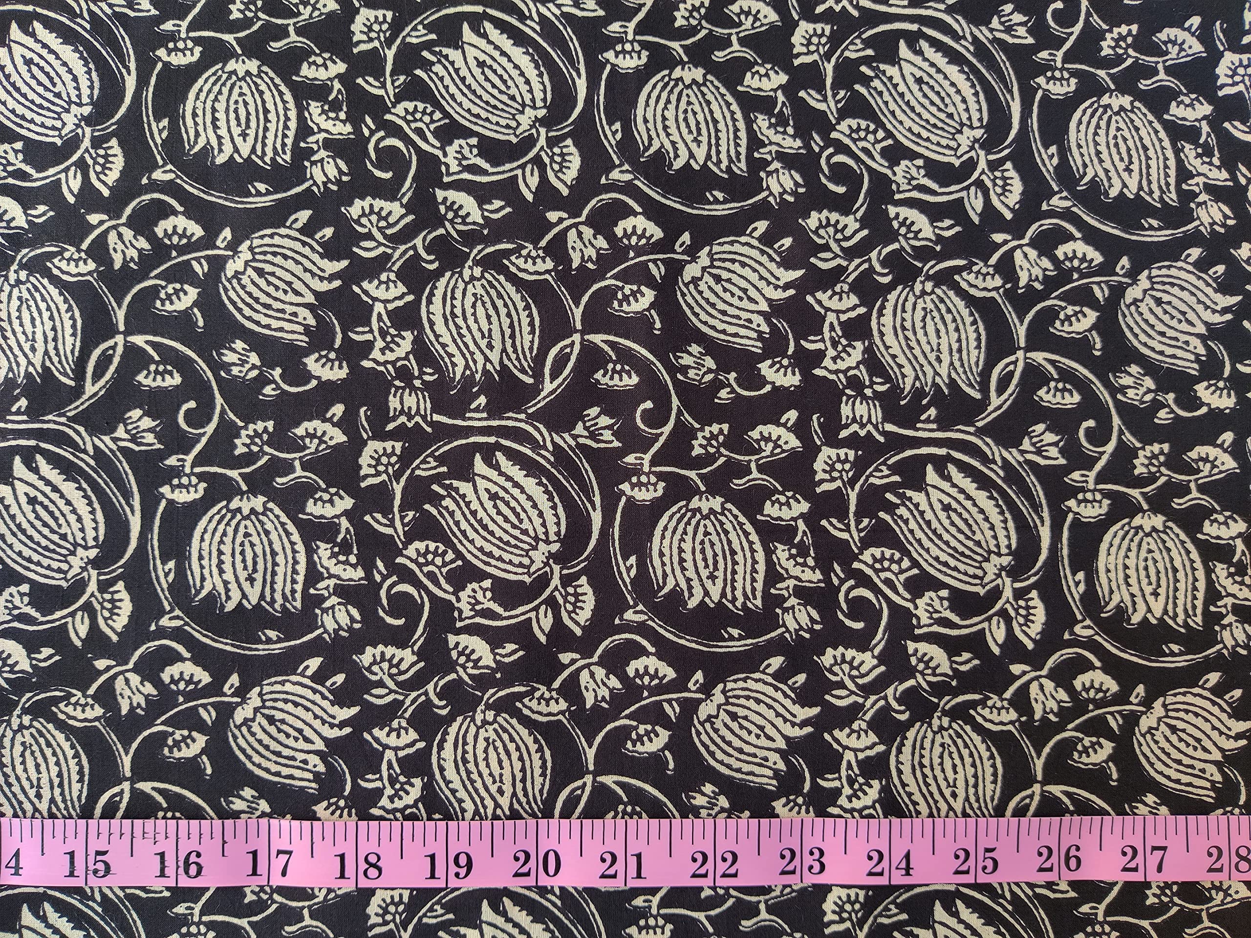 This is a precut piece of 3 yards of an Indian cotton fabric. This is a hand printed fabric using wooden blocks or screens. The width of the fabric is 42 inches. It is a pure cotton yardage and is a thin light weight cotton. Ideal for garments and light home linen. Use this unique and beautiful printed cotton for your next sewing project. If you order 2 quantity, you will receive 2 pieces of cut fabrics of 3 yards each. You will not receive a continuous yardage.