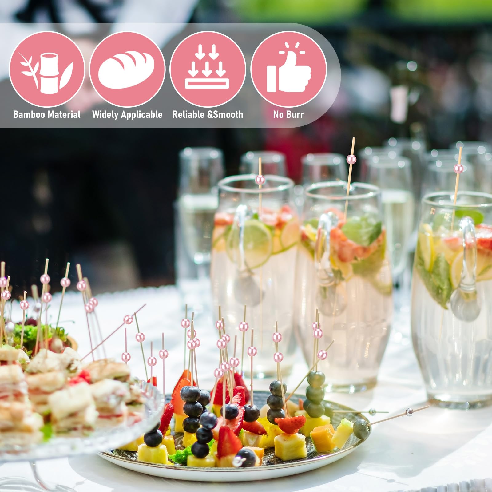 Elegant Party Toothpicks for Appetizers: not just functional, our bamboo skewers boast an elegant design that adds a certain charm to any dish; Featuring fancy pink pearl toothpicks, cocktail toothpicks, and pink toothpicks for appetizers, our appetizer picks add a touch of sophistication to your presentation