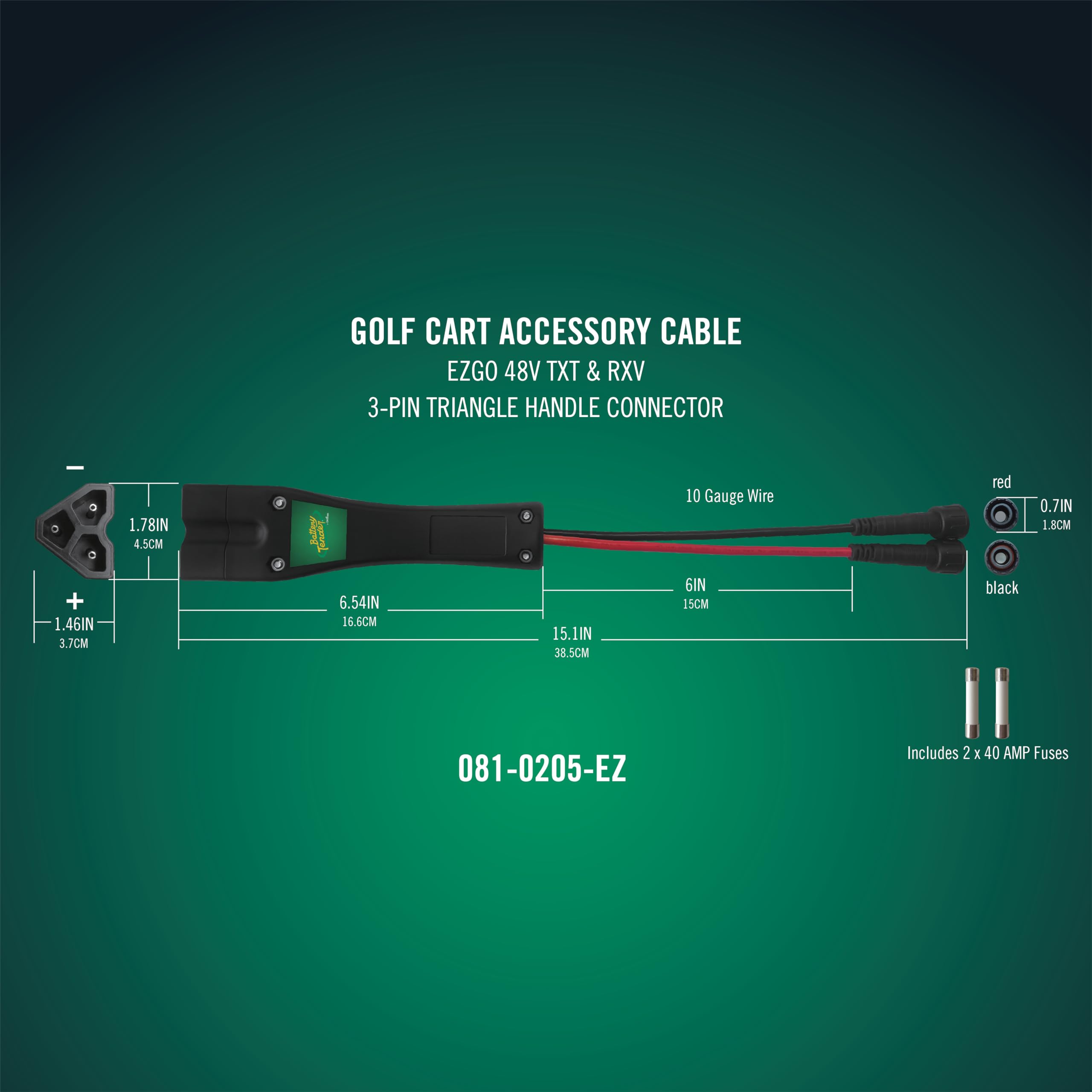 "Compatibility: This E-Z-GO 48V charging plug is specifically engineered to connect to a Battery Tender PowerPlus charger to seamlessly charge E-Z-GO TXT and RXV models. "