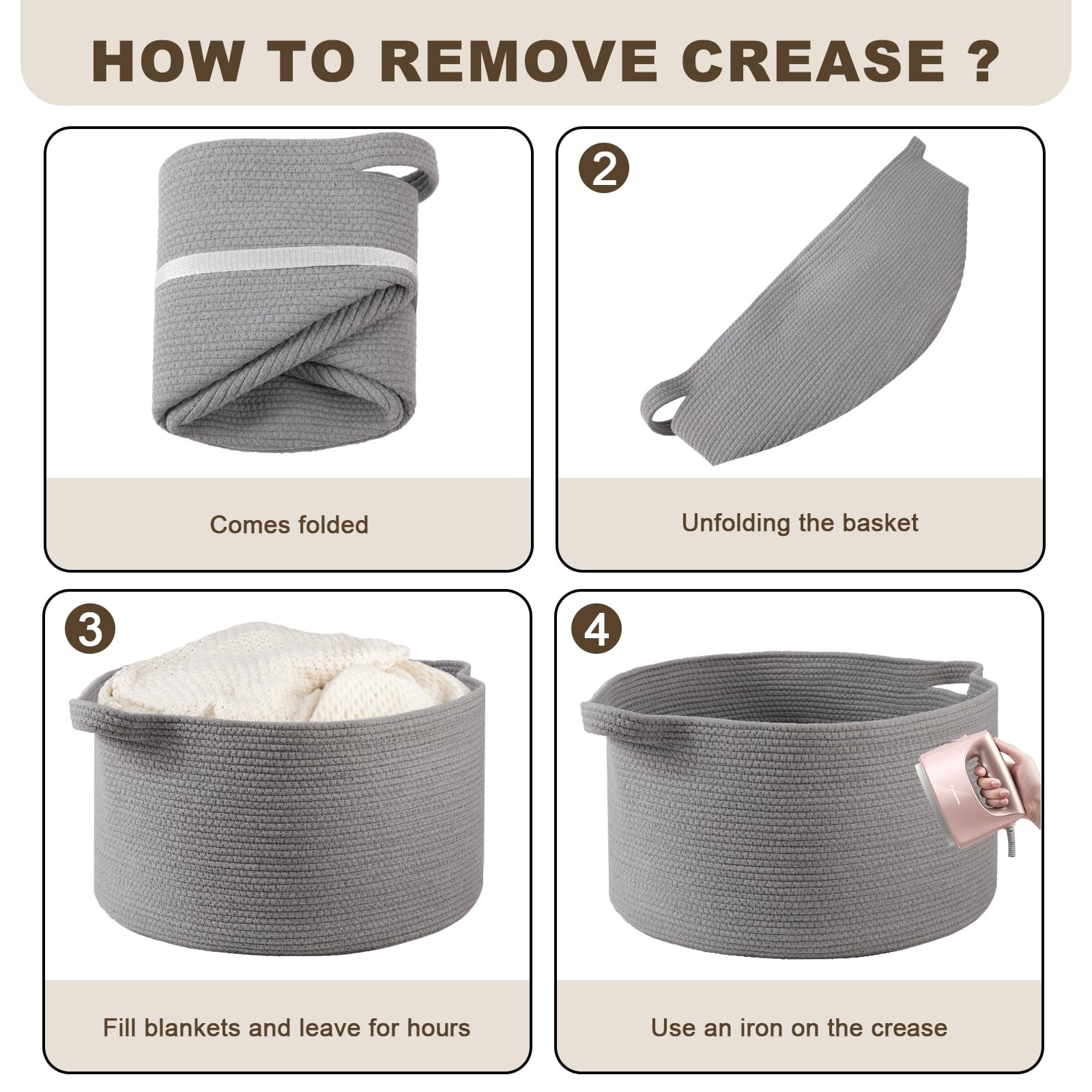 Comfort Material: Blanket storage for living room is made of sturdy cotton rope weaving, the woven basket is tightly stitched and can be used for a long time, soft and comfortable cotton rope baskets won't scratch furniture and floors, free of harmful chemicals, baby and pet friendly