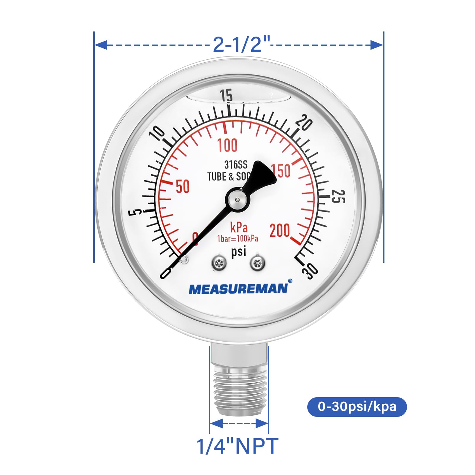 2-1/2" dial size, 1/4"NPT lower mount, TIG welding between case and socket