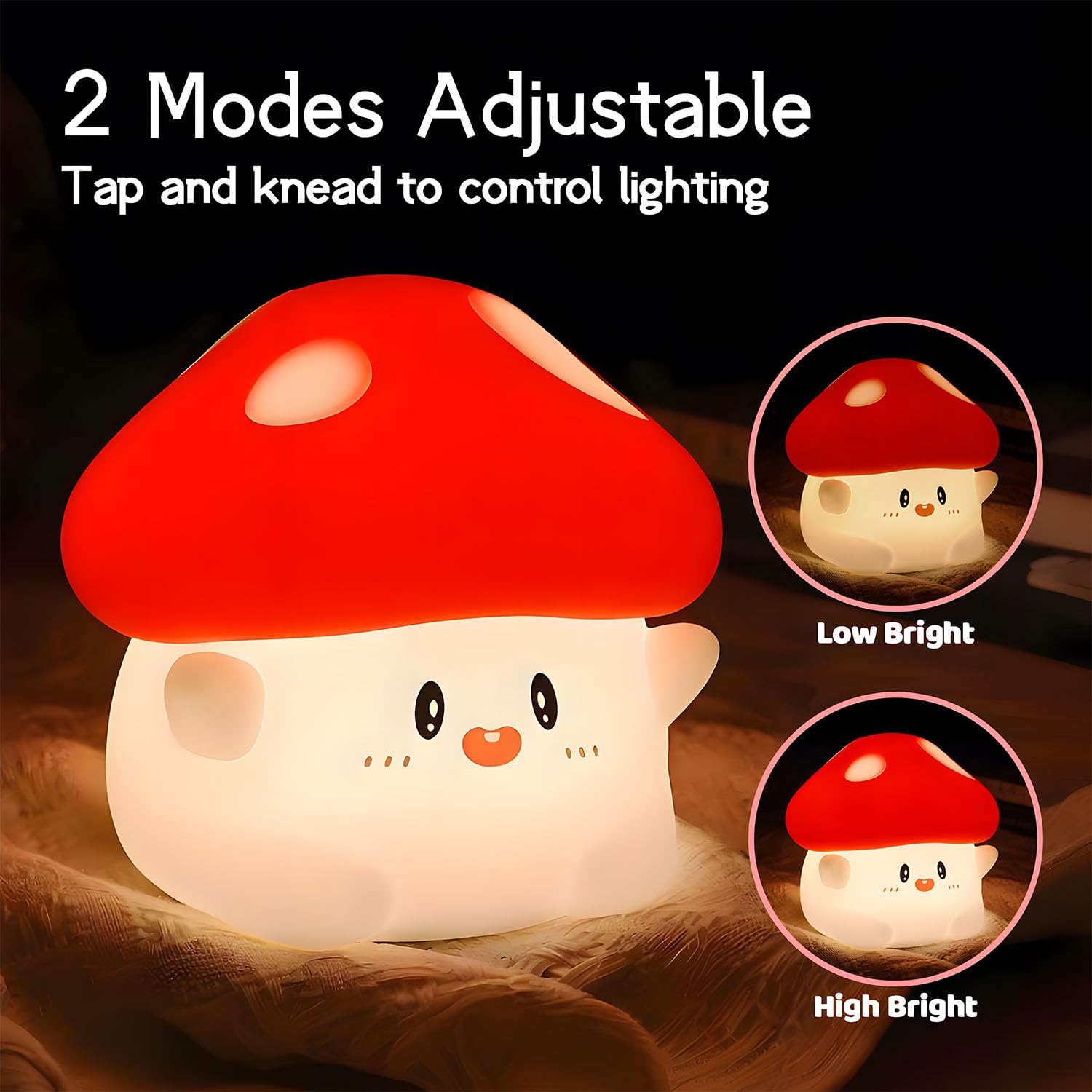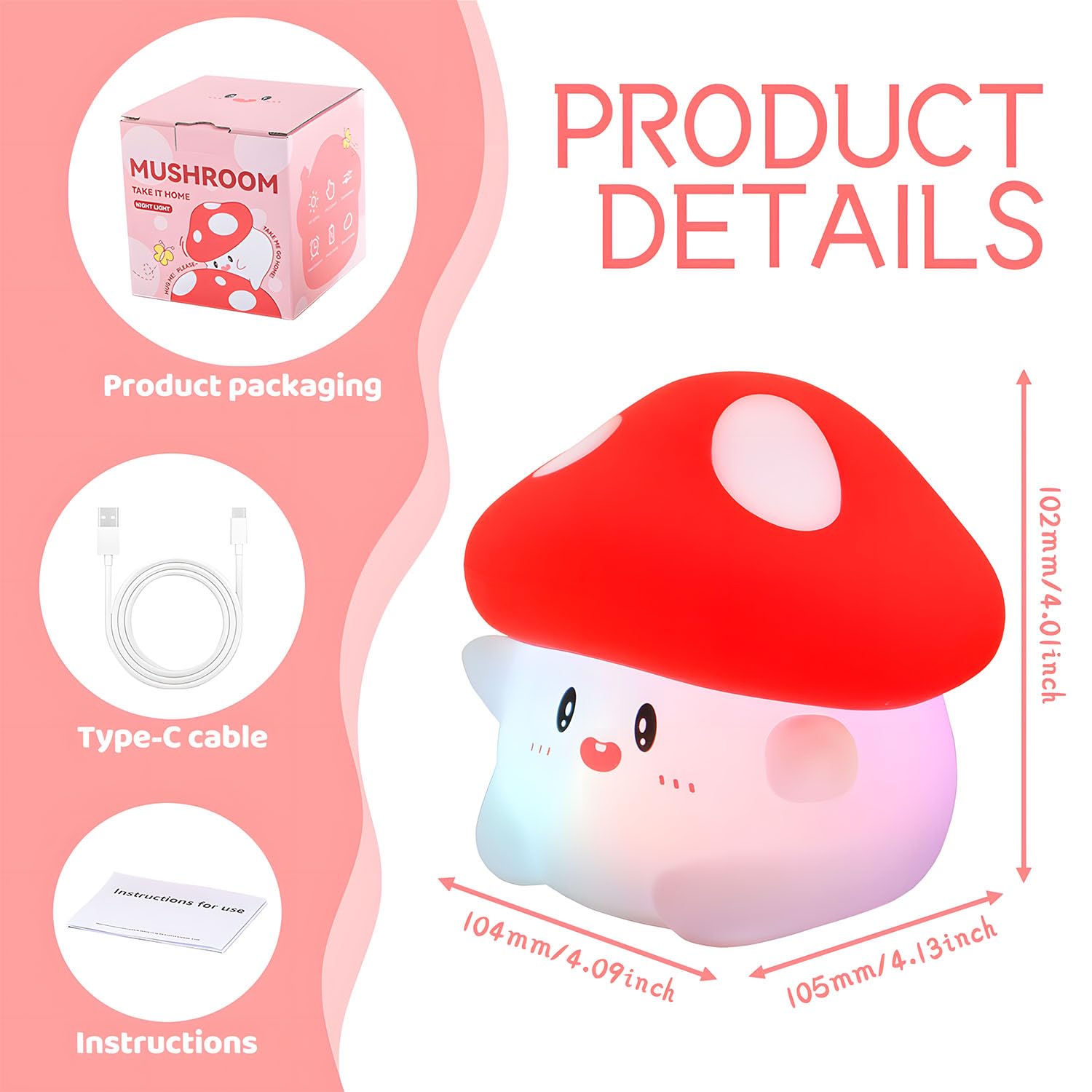 đ A Gift That Spreads Joy (for Kids & Grown-Ups Alike!) Packaged in a cute gift box, this mushroom lamp is the perfect present for birthdays, Christmas, baby showers, or âjust becauseâ. Kids love its squishy texture and playful colors, while parents appreciate the safety, long battery life, and easy controls. Even adults will adore its cozy glow as a desk or bedroom accent. Includes 1x Mushroom Light, 1x USB-C Cable, and our 24/7 customer supportâbecause everyone deserves a little lighthearted magic!