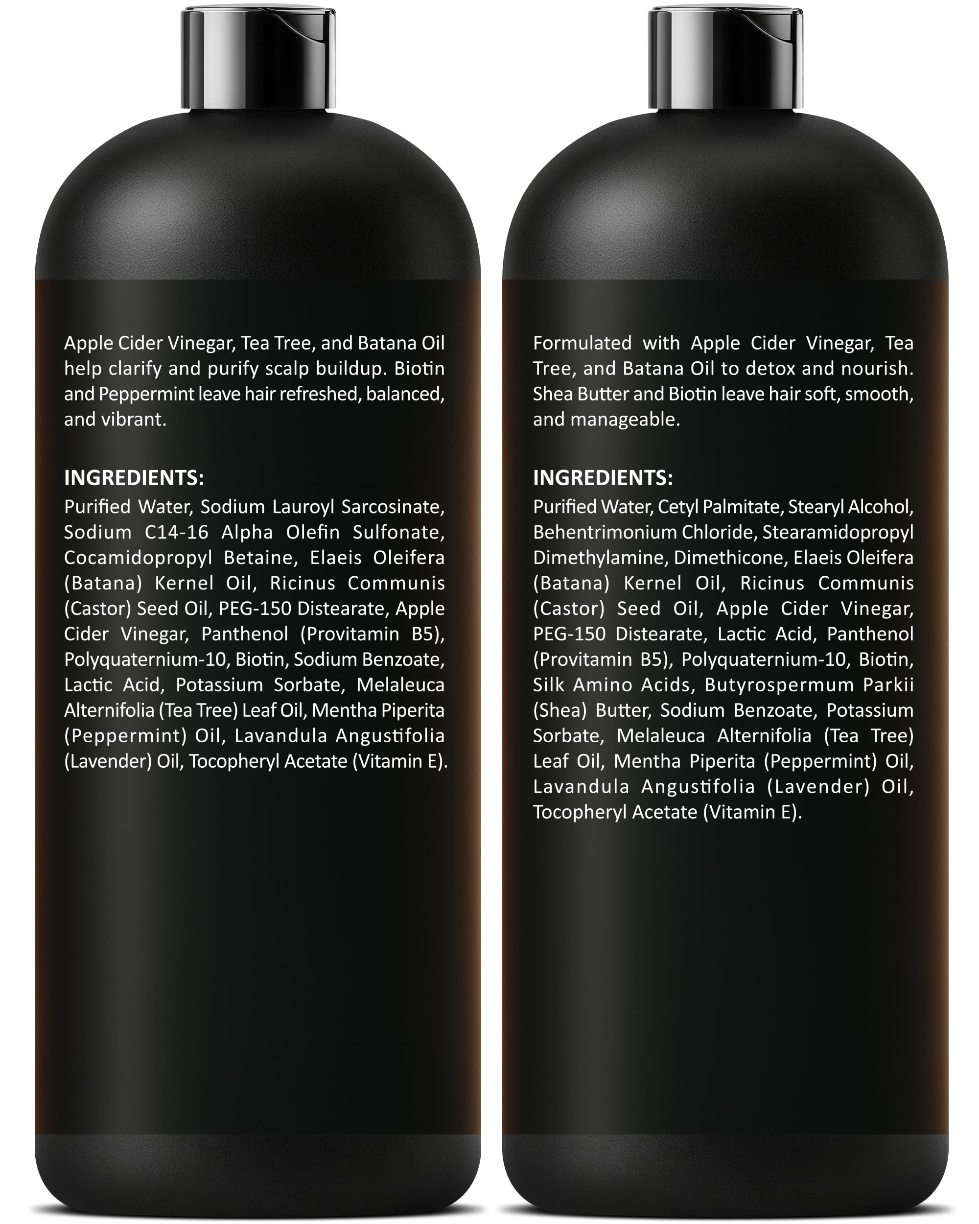 ACV & BATANA DUO COMPLETE HAIR GROWTH & CLARIFYING SET: Apple Cider Vinegar and Batana Oil work together in this shampoo and conditioner set to clarify, strengthen, and revitalize from scalp to root ends.