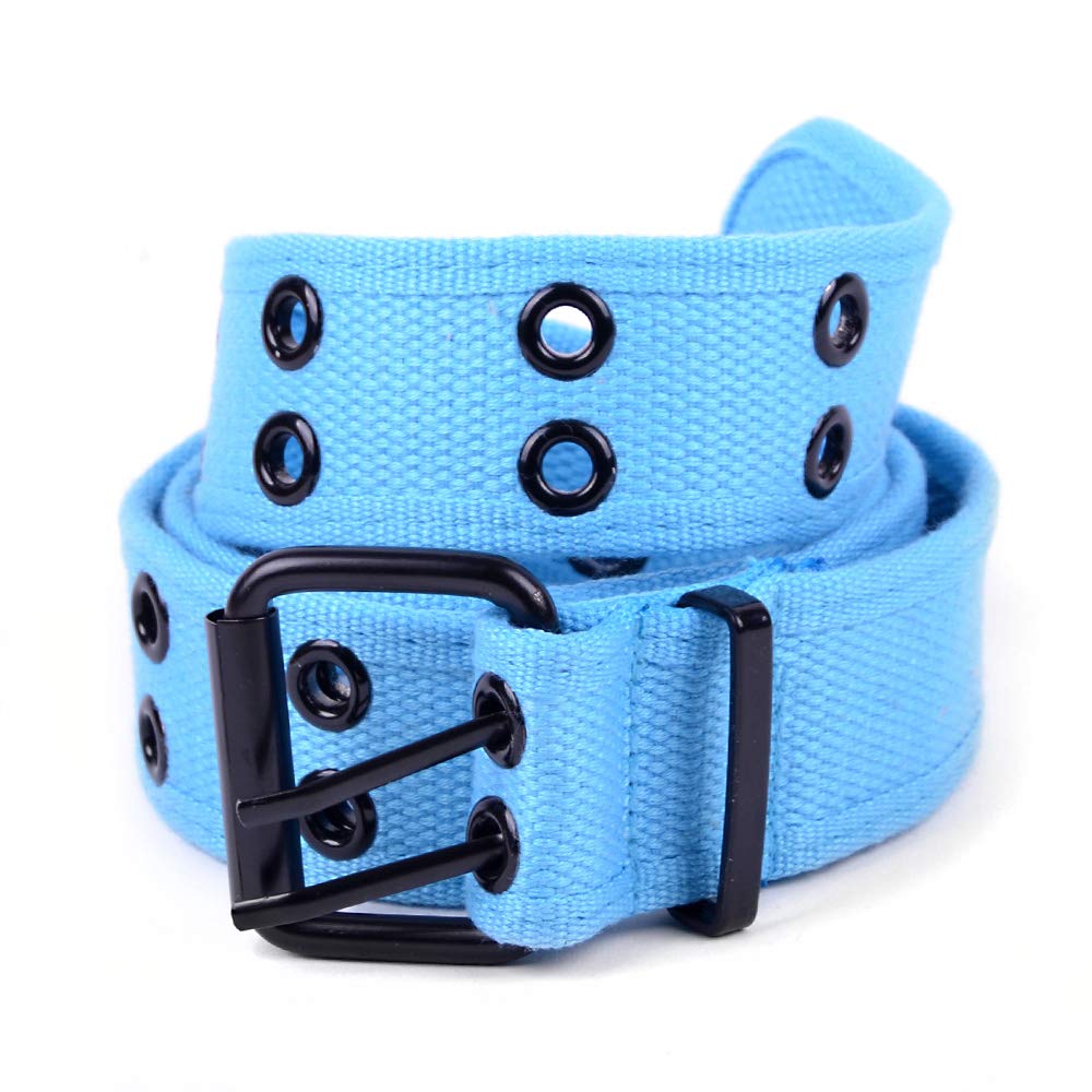 Canvas Web Belt /Black Double Grommet Holes / Metal Buckle