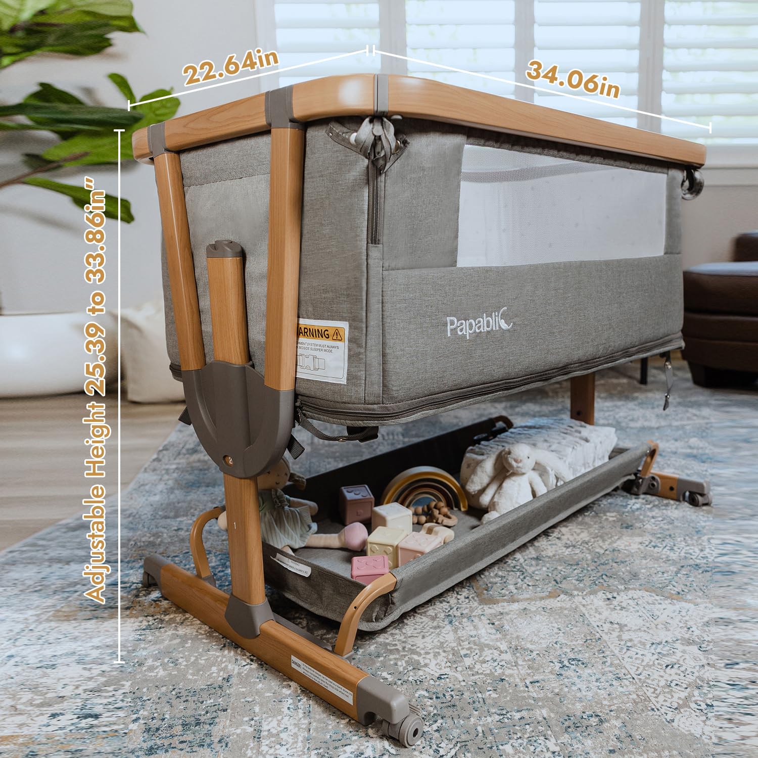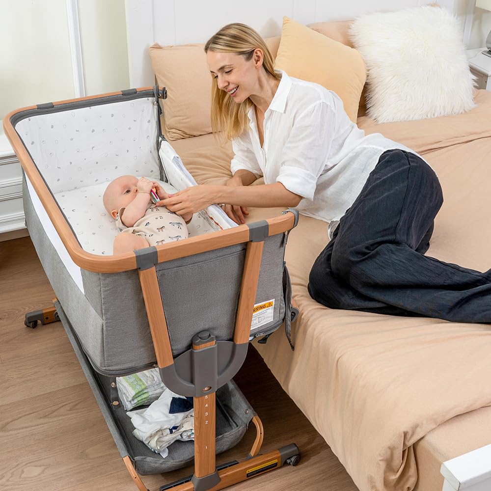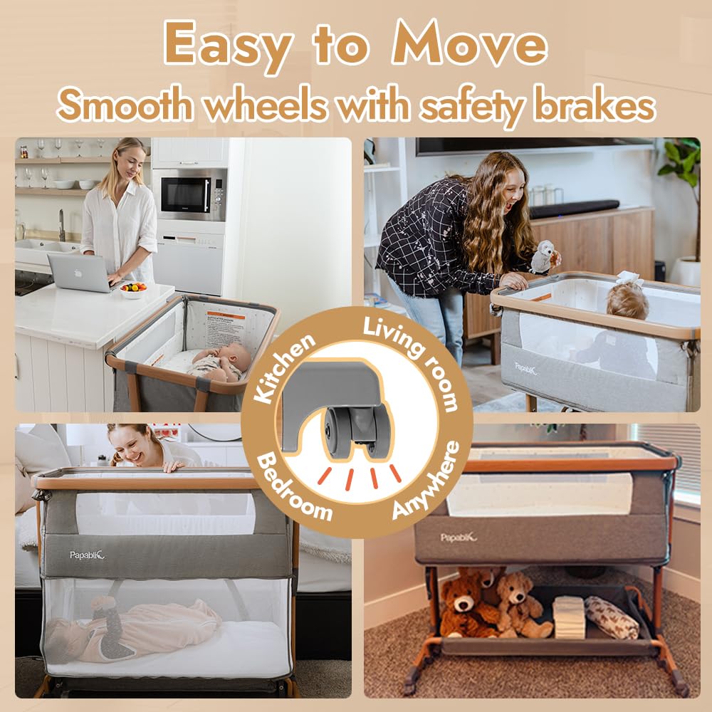 Super 4-in-1 Design: The Papablic tonio-wood printed baby bassinet easily transforms into a bedside bassinet, standalone bassinet, rocking bassinet and even a playardβperfect from newborn to toddler (0-3 years). One bassinet, four ways to use it as your baby grows!