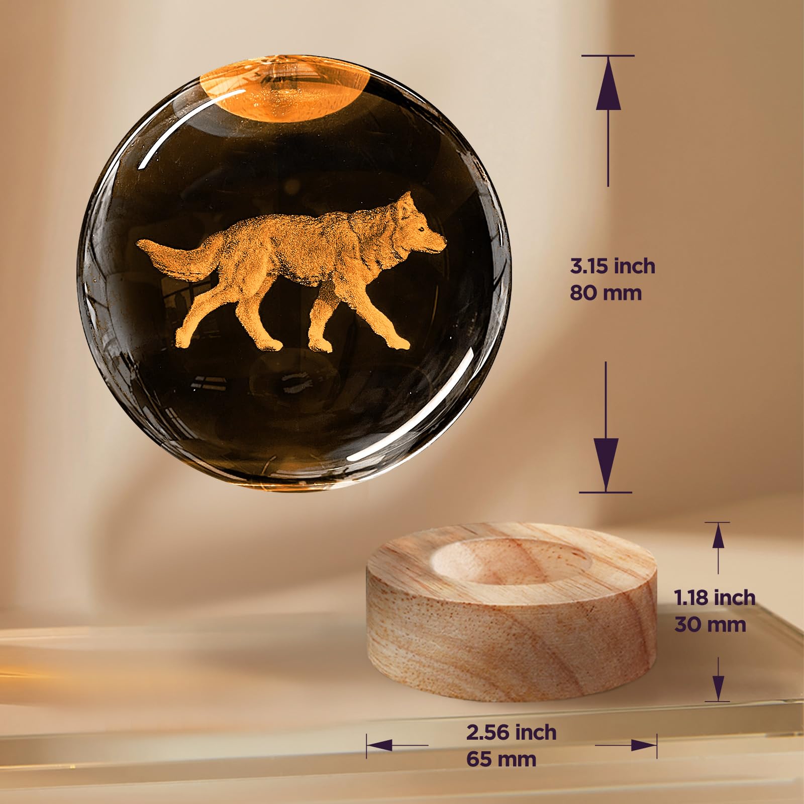 🔮【3.15 Inch Large Wolf Crystal Ball】By upgrading, the diameter of the crystal ball is 3.15 inches(8cm). The weight is about 0.65kg (1.43 pounds). Equipped with a wooden base, the crystal ball can be stably placed on the wooden base.
