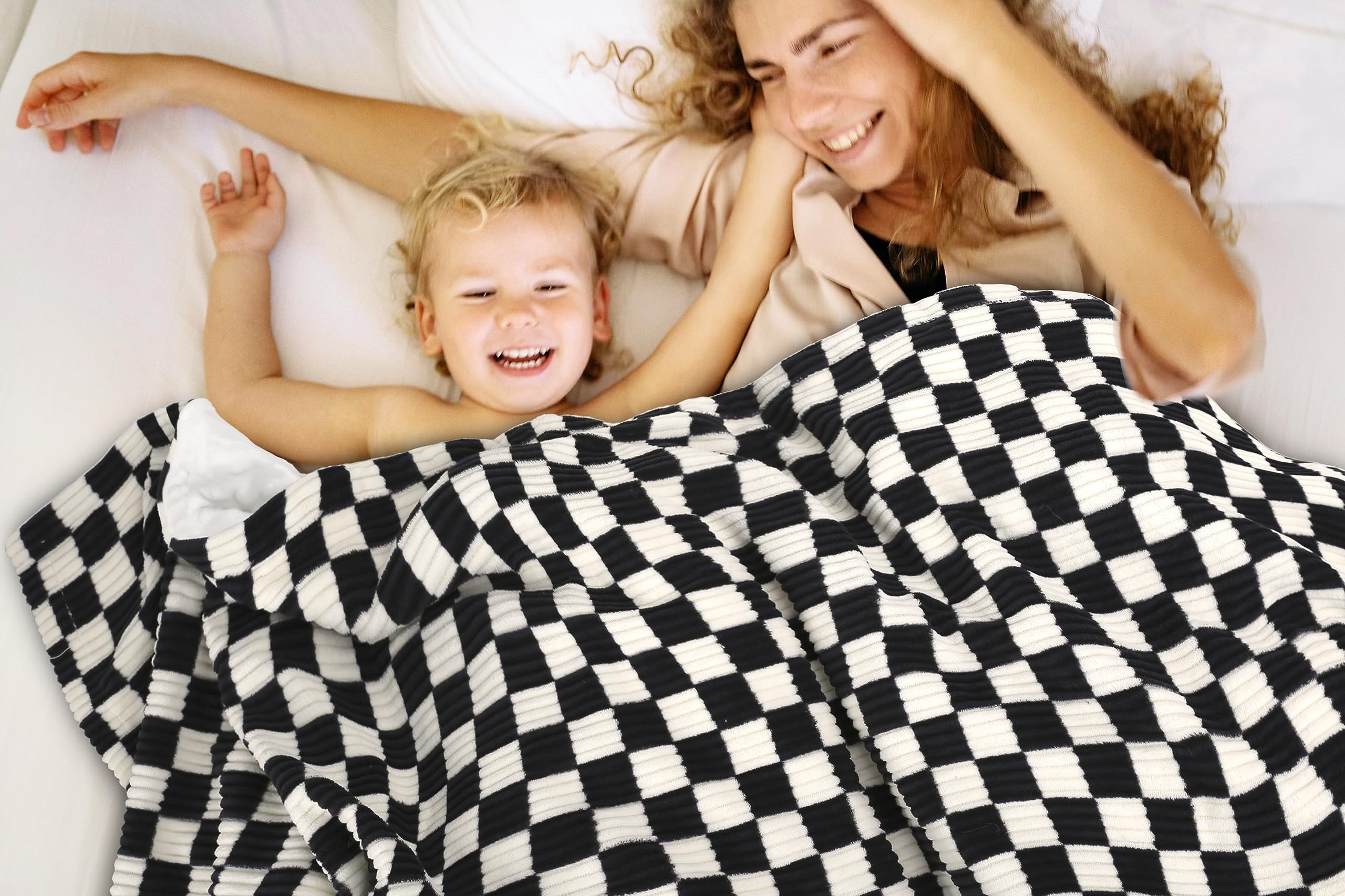 BEILIMU Baby Blanket for Kids Adults Comfy Durable Corduroy Toddler Blanket with Double Layer Dotted Backing Checkerboard Grid Chessboard Gingham Warmer Bed Blankets for All Season Black, 50x60 Inches