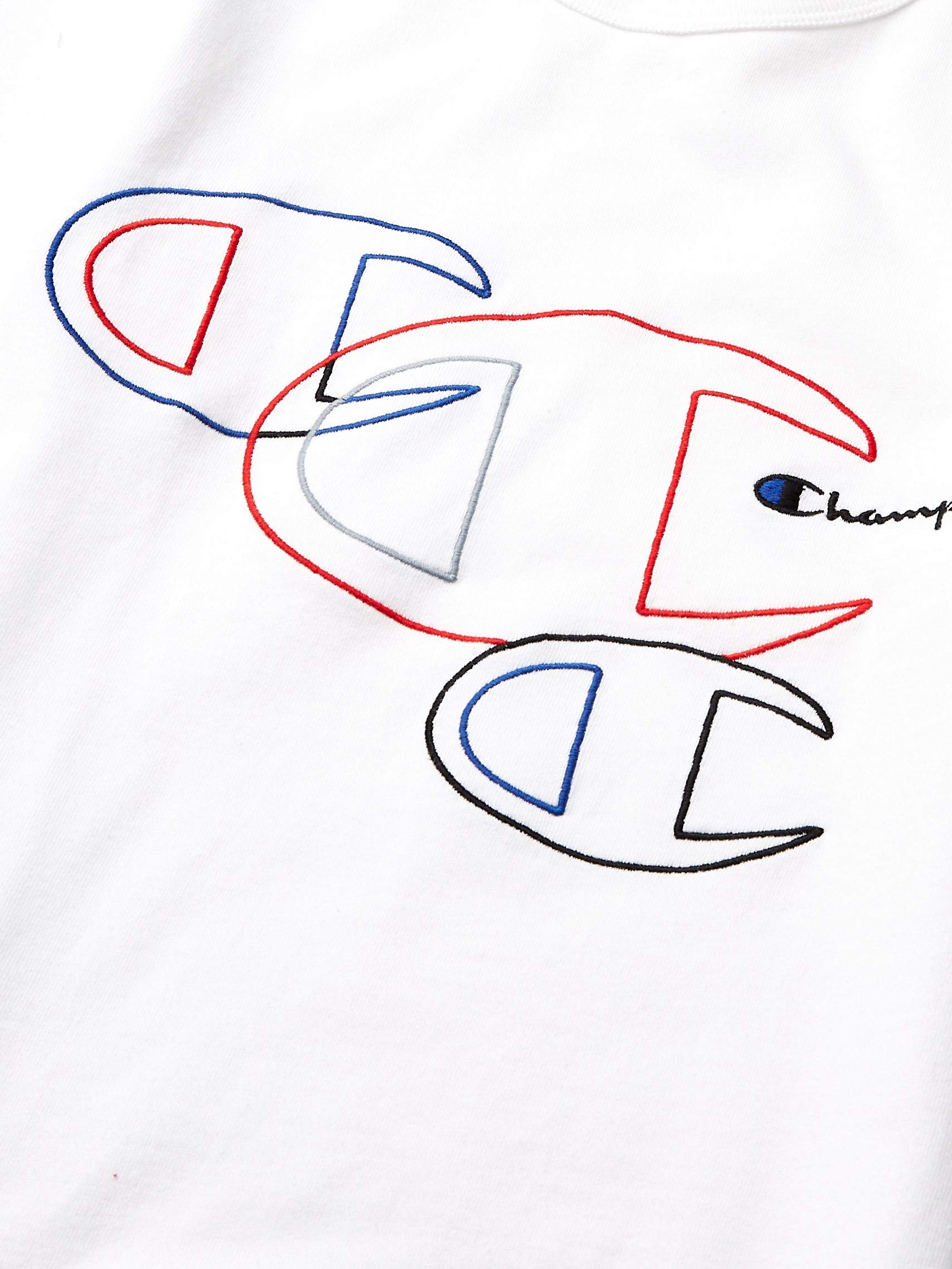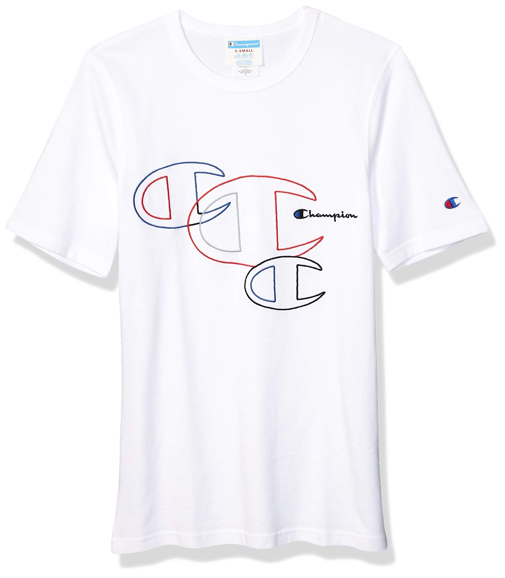 Description Our Champion heritage tee, available in solids and prints, is heavyweight 7 ounce. Jersey fabric. Champion graphics are truly inspired by our archives and our long history of athletic wear. Champion - a step above.