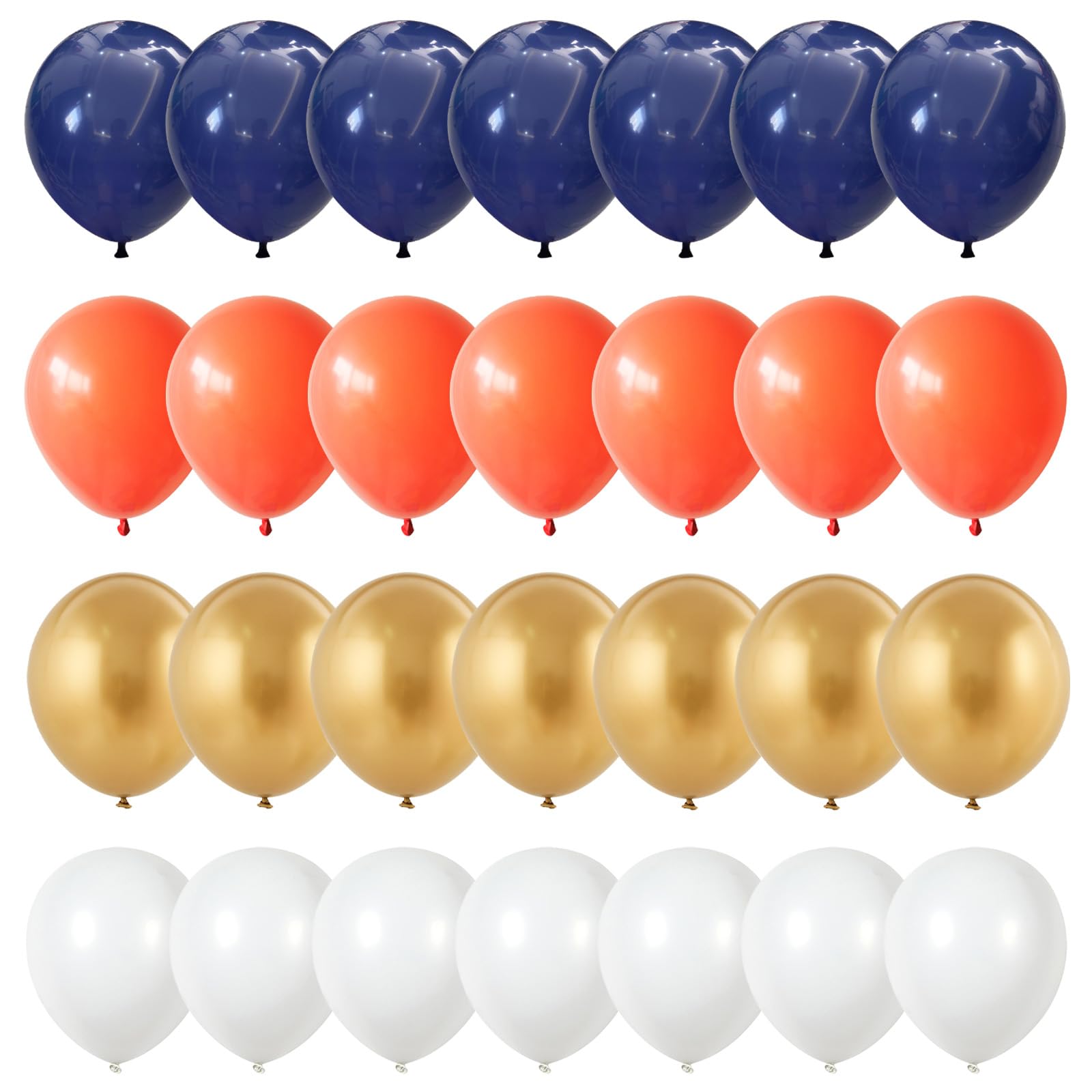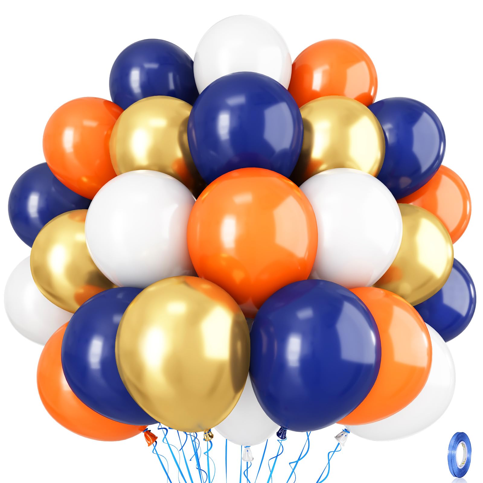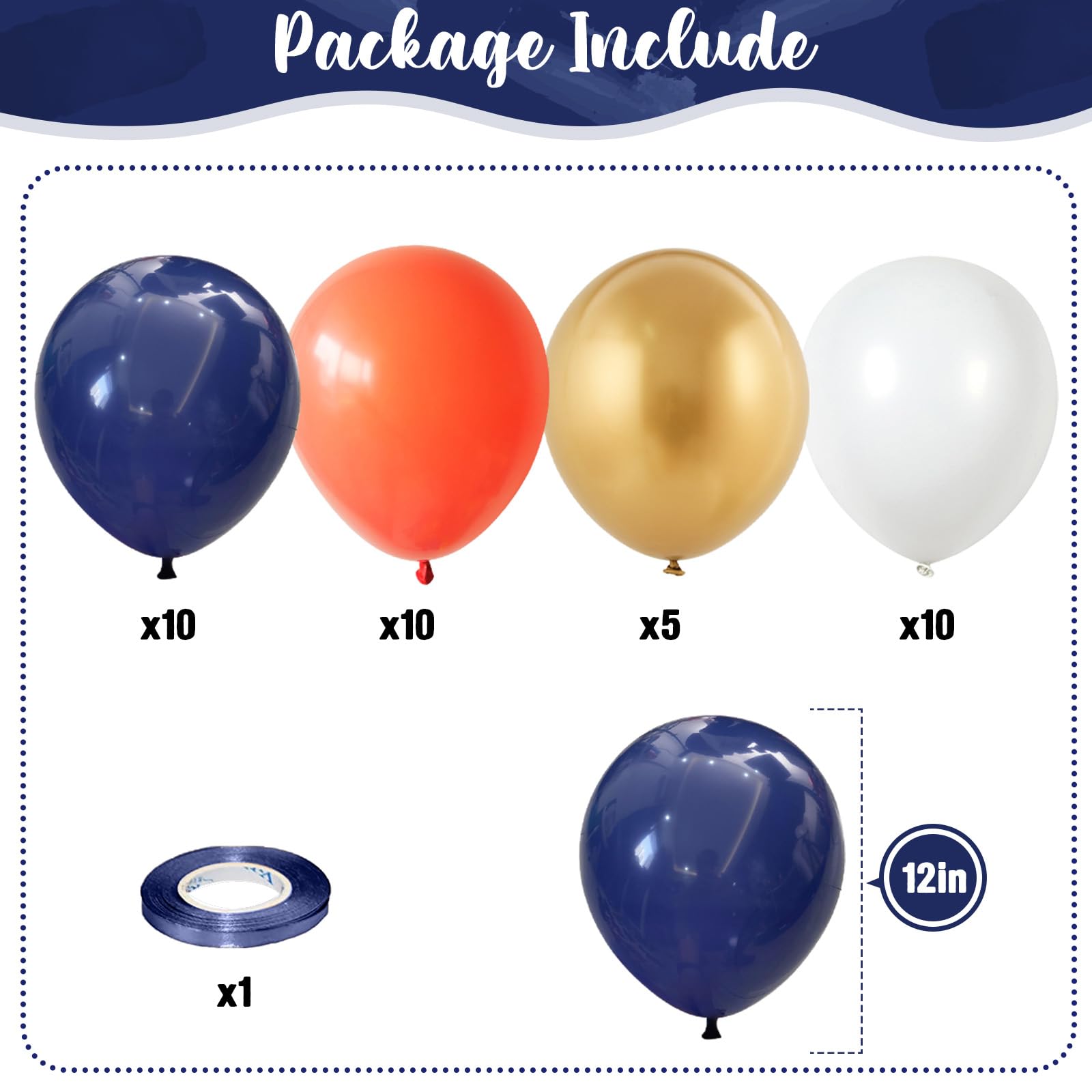 π Navy Blue Orange Gold Balloons - You will get 35 pieces 12 inch latex party balloons set, includes navy blue 10pcs, matte orange 10pcs, matte white 10pcs, metallic gold 5pcs, come with 1pc blue balloon ribbon. Perfect for boys men space birthday baby shower wedding party decorations supplies.
