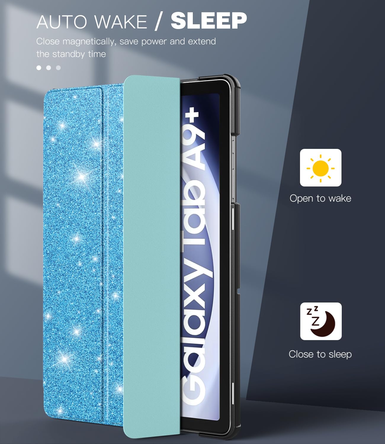 Auto Wake/Sleep: Magnetic cover provides auto sleep/wake feature. Save much power for your tablet so that reduce charging frequency. Slim and lightweight design will not increase the bulk of your tablet, easy to snap on and off