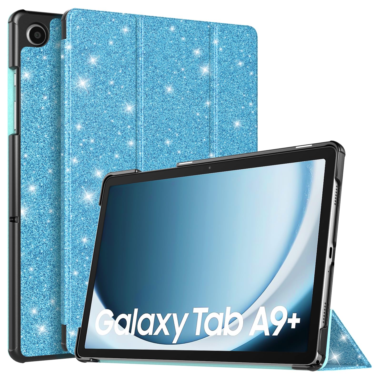 Perfect Compatibility: Specially designed for Samsung Galaxy Tab A9+ Case 2023; NOTE: NOT work for any other tablet model device. Product Features: ◆ Made with premium PU leather exterior and microfiber interior to protect your Galaxy Tab A9+ tablet; ◆ Transform into typing or viewing angle without hassle; ◆ Precise cutouts and openings for button controls, ports and camera; ◆ Avoid any joint pain, and free your hands for other entertainments.