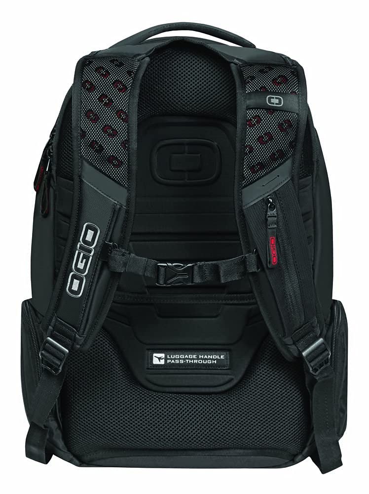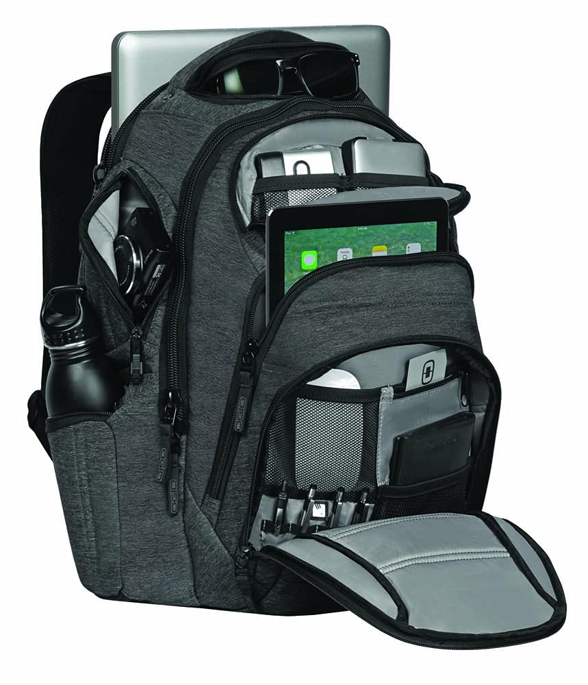 Description Ogio is a leader in marketing and supplying the Powersports industry with performance gear comprised of bags, packs, ramps, stands and other accessories. OGIO’s focus on innovative products is paralleled with the finest quality construction using premium materials that have been rigorously tested against blowouts, abrasion, color fading. Armor protected dedicated laptop compartment with RSS fits most 15” laptops and select thin 17" laptops Integrated foam panels keep your electronics and other valuables protected Padded iPad(TM)/tablet/e-reader pocket Crush proof Tech Vault pocket with soft tricot liner HUB (Hybrid Unibody Backpanel) for ultimate comfort Padded mouse/digital camera pocket Increased shoulder strap foam padding creates Sweet Spot comfort zone Fully adjustable ergonomic shoulder straps with sternum strap Two zippered side utility pockets Dual side water bottle/accessory holders Quick access expandable phone pocket Deluxe organization panel with zippered stash pocket Soft touch padded neoprene grab handle Polyester Dimensions- 19.5 H x 14 W x 10.5 D inches Weight: 3.5 Lbs Capacity: 1800 Cubic Inches Laptop Pocket: 15.5"H x 10.5"W x 1"D