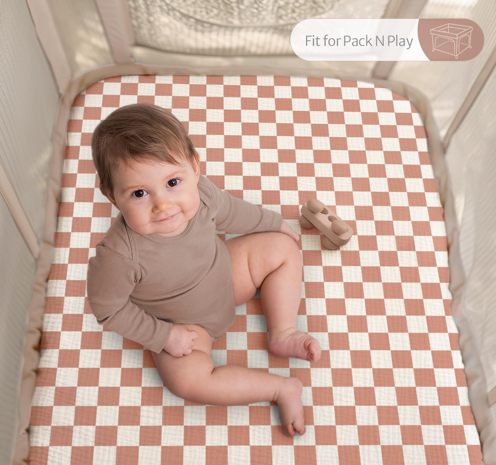 Nice Baby Essentials: Chic Checkerboard Nursery Style! These versatile muslin pack n play sheets feature the on-trend checkered pattern, perfectly matching any nursery decor and making a delightful gift for boys or girls