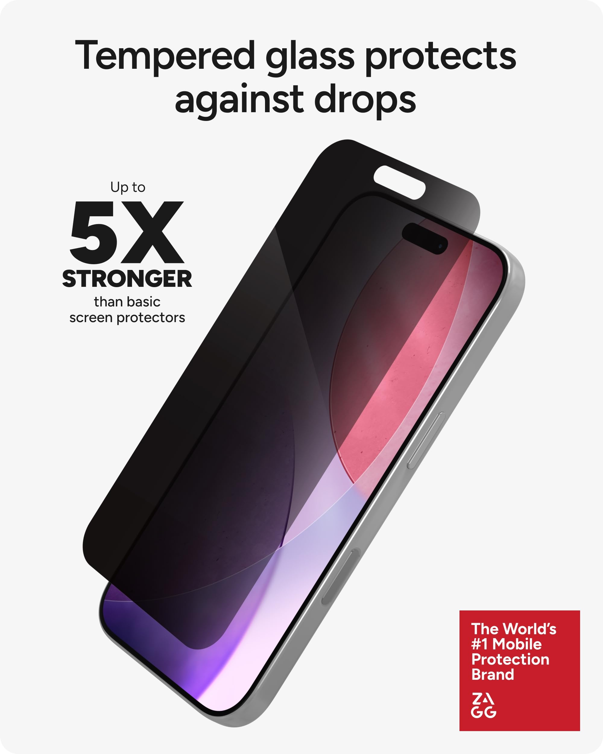 ZAGG EASY PerfectFit INSTALL - Unlike most iPhone screen protectors, ZAGG's iPhone 17 Pro tempered glass is easy to install. The ZAGG's PerfectFit two-step installation helps you apply the screen protector quickly and accurately at home