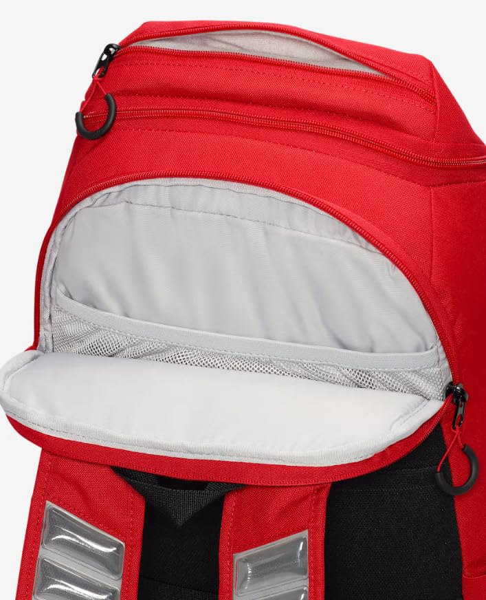 Description The Varsity Elite backpack holds everything you need to hoop. A large main compartment fits up to a full-size basketball. Exterior front pocket allows quick access to small items and a bottom pocket keeps sweaty clothes and dirty shoes separate. A trolley sleeve allows you to attach it to your luggage when traveling for those away games.