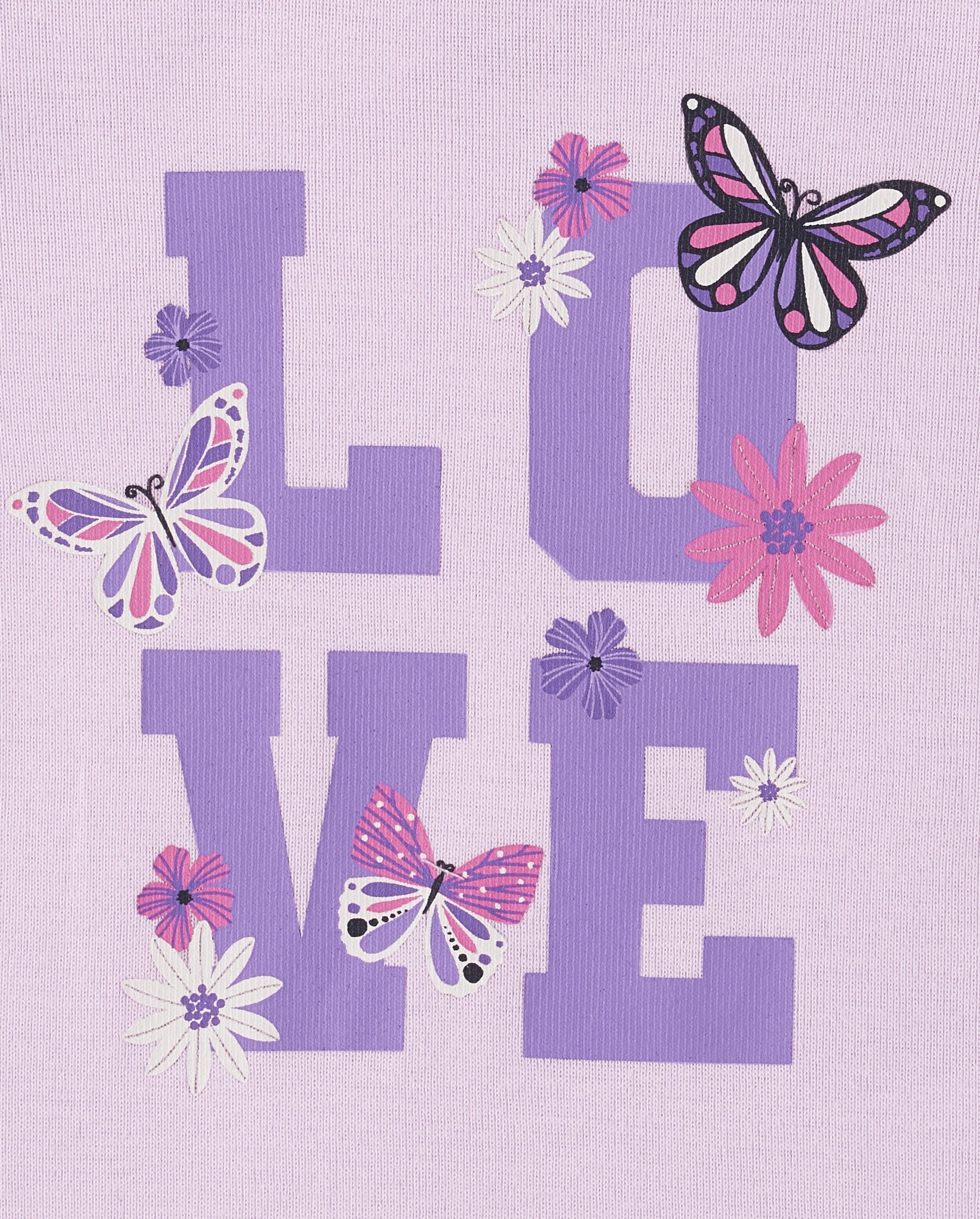 PAJAMA TOP — Features long sleeves, rib-knit crew neck and sleeve cuffs and 'Love' with butterflies graphic design at front