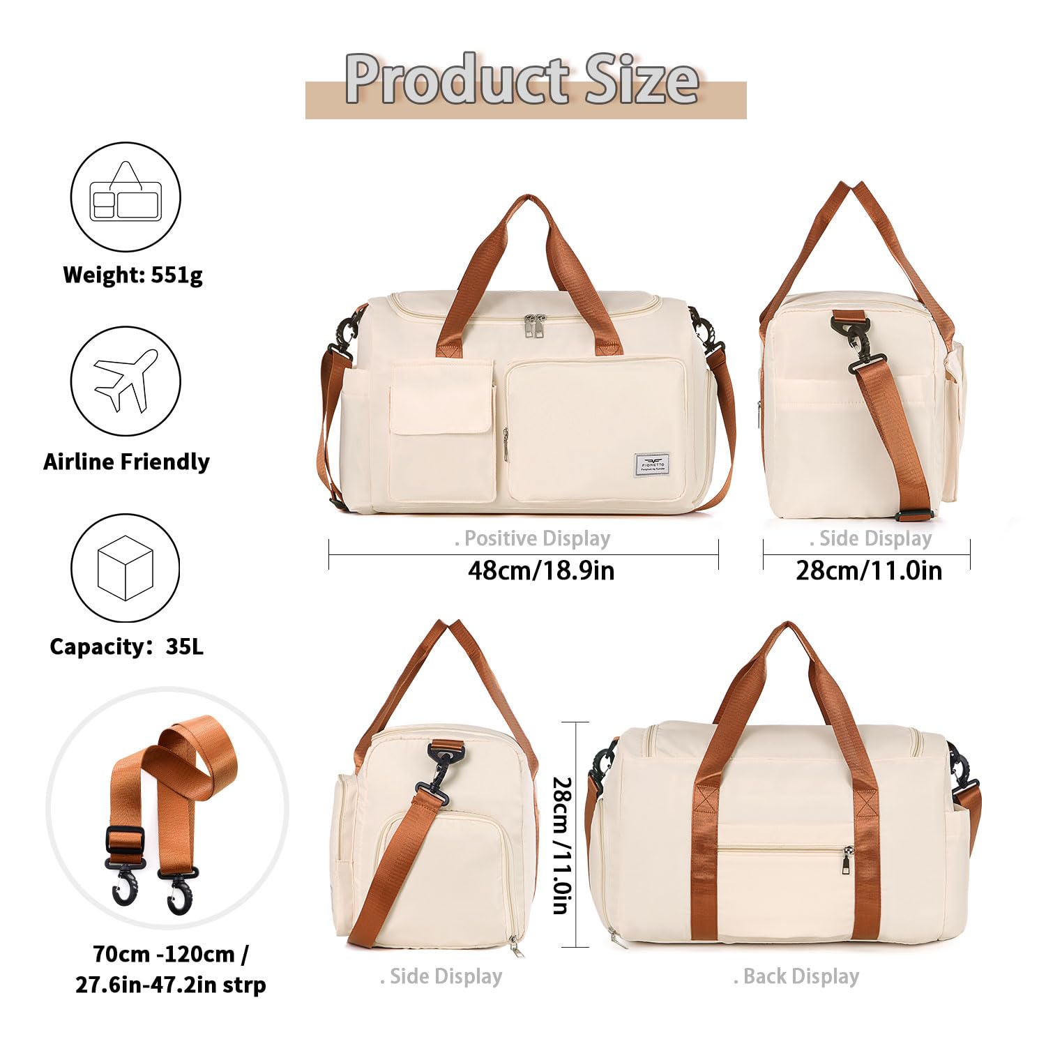 Airplane-friendly Travel Bag: The size of this travel bag is 18''×11''×11'', ideal as a carry on bag. With additional adjustable shoulder strap & integrated trolley sleeve, the tote bag can be carried with you everywhere, making your travel a breeze