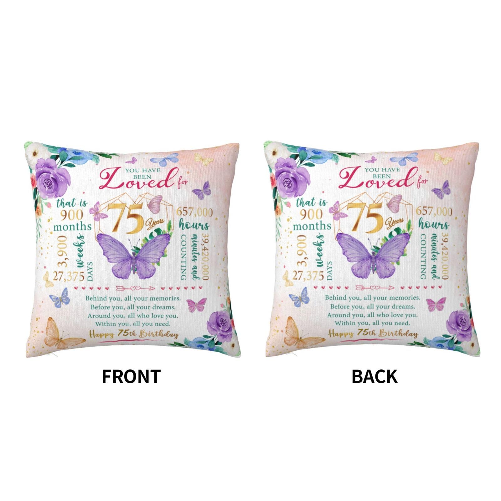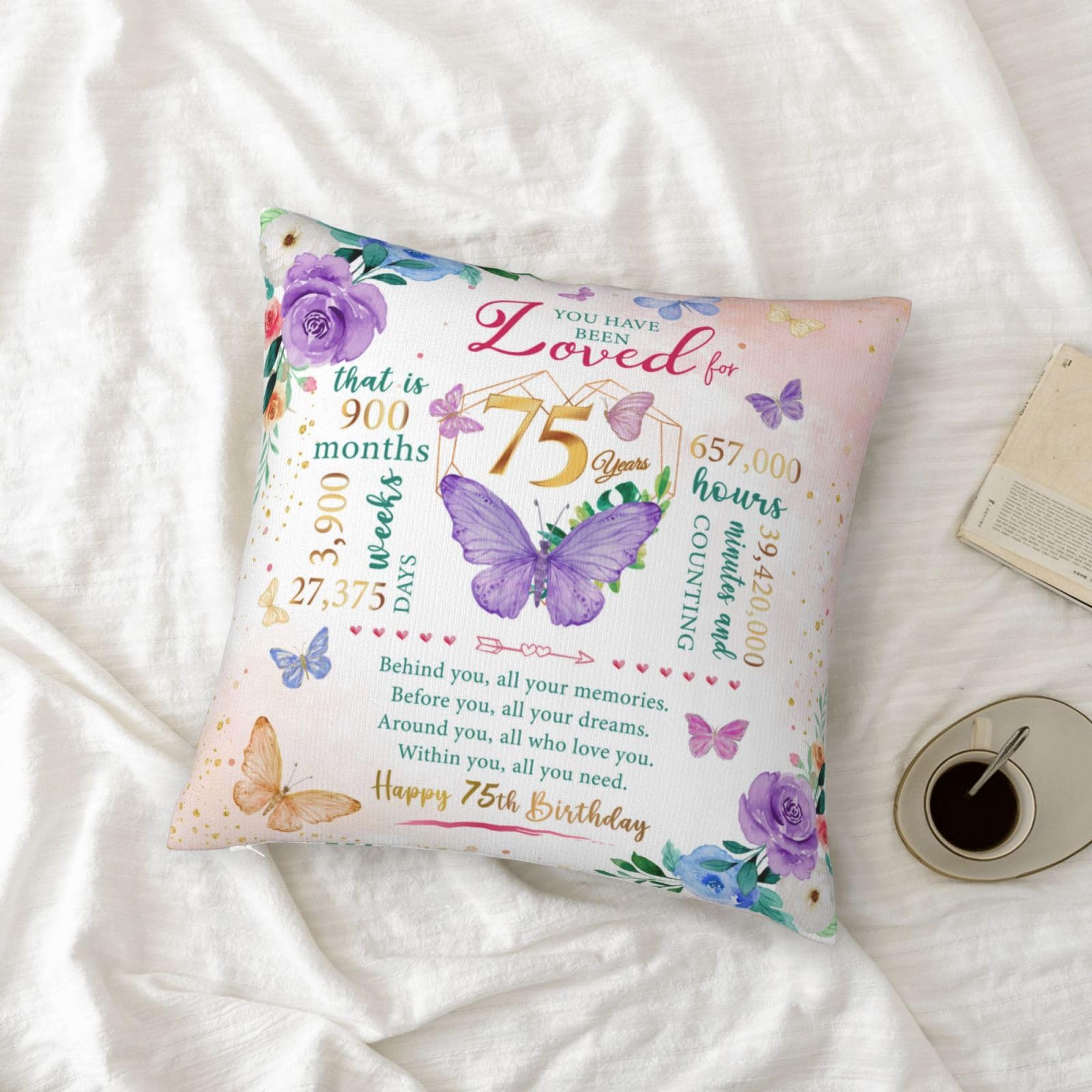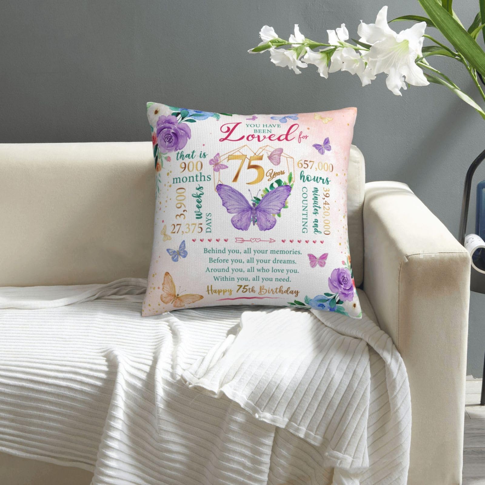 Happy 75th birthday! When that day comes, it means that exactly 75years, 900months, 3,900 weeks, 27,375 days, and 657,000 hours have passed since we landed on this earth. Birthday gifts carry our love and enthusiasm for the birthday person, everyone needs to be remembered and blessed, love her, you must speak out! This is a 75th birthday gift & decoration for women, 75th birthday gift idea, 75th birthday party decoration, 75 year old birthday gift for women, mom 75th birthday gift idea, 1950 birthday gift for women, best gift for 75 year old woman. This pillow case is suitable for dear her who is about to celebrate her 75 year old birthday, and can be given to a variety of identities and professions, such as wives, mothers, friends, teachers, colleagues, etc. Applicable scenarios include bedroom, study, living room, office, car, etc. This pillow case can also play the role of embellishing space and beautifying the scene. Is the ideal interior decoration, can be used in the bedroom, living room, study, balcony and other scenes. Similarly, the function can also extend to the outdoors, whether it is in outdoor venues such as picnics, camping, or concerts. Note: The pillow case is made of polyester fabric, can be directly machine washed;The pillowcase does not include the insert .