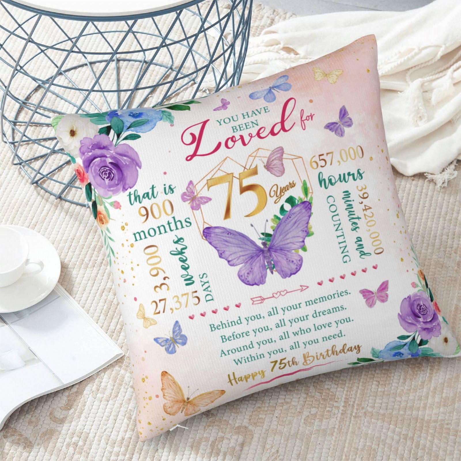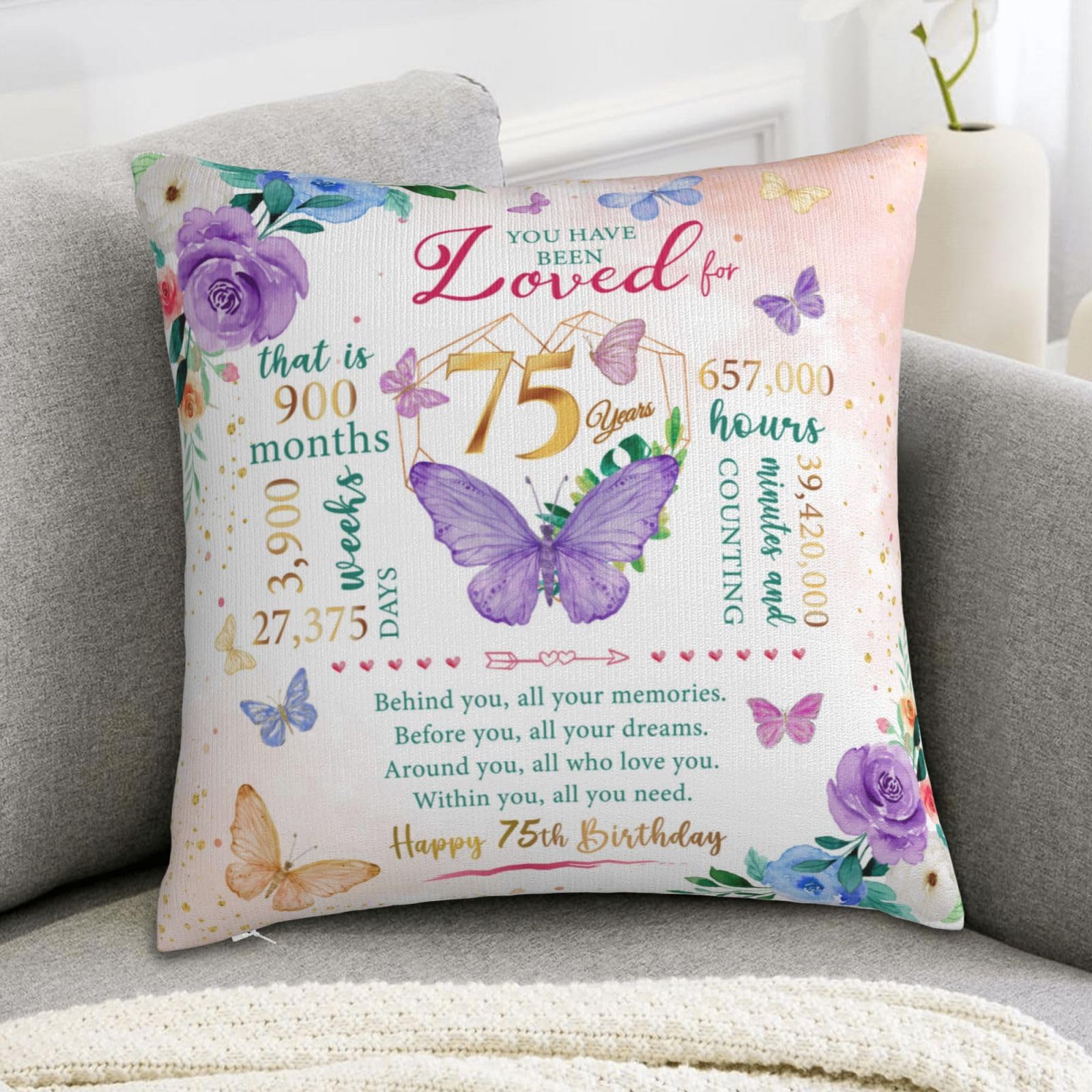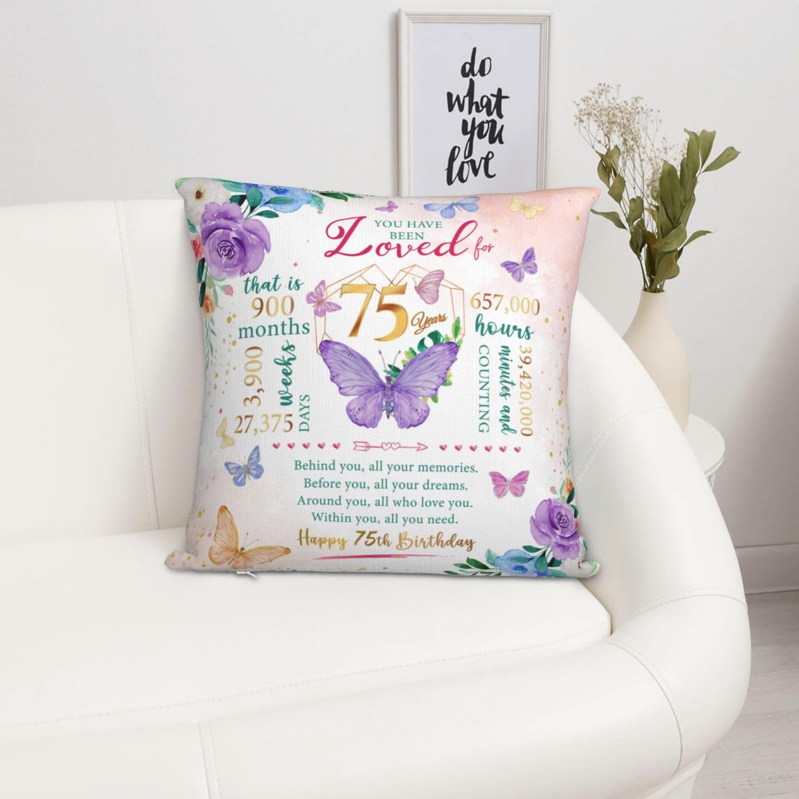 Happy 75th birthday! When that day comes, it means that exactly 75years, 900months, 3,900 weeks, 27,375 days, and 657,000 hours have passed since we landed on this earth. Birthday gifts carry our love and enthusiasm for the birthday person, everyone needs to be remembered and blessed, love her, you must speak out! This is a 75th birthday gift & decoration for women, 75th birthday gift idea, 75th birthday party decoration, 75 year old birthday gift for women, mom 75th birthday gift idea, 1950 birthday gift for women, best gift for 75 year old woman. This pillow case is suitable for dear her who is about to celebrate her 75 year old birthday, and can be given to a variety of identities and professions, such as wives, mothers, friends, teachers, colleagues, etc. Applicable scenarios include bedroom, study, living room, office, car, etc. This pillow case can also play the role of embellishing space and beautifying the scene. Is the ideal interior decoration, can be used in the bedroom, living room, study, balcony and other scenes. Similarly, the function can also extend to the outdoors, whether it is in outdoor venues such as picnics, camping, or concerts. Note: The pillow case is made of polyester fabric, can be directly machine washed;The pillowcase does not include the insert .