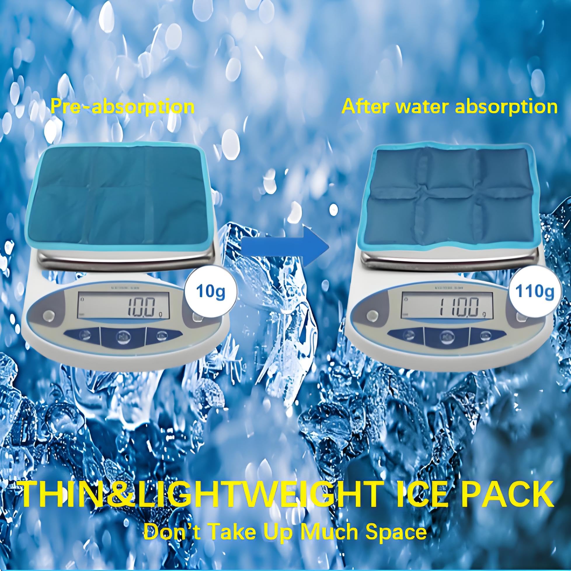 Reusable & Eco-Friendly:Made of high-absorbency resin, these non-toxic ice packs can be reused many times. Unlike disposable dry ice, they’re leak-proof, odorless, and safe for direct food contact – a sustainable choice for daily use.