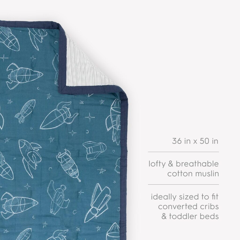 EXCEPTIONAL SOFTNESS: Crafted from premium 100% cotton muslin with polyester fill, our comforter is lightweight, lofty and will keep your toddler cozy and warm in all seasons.